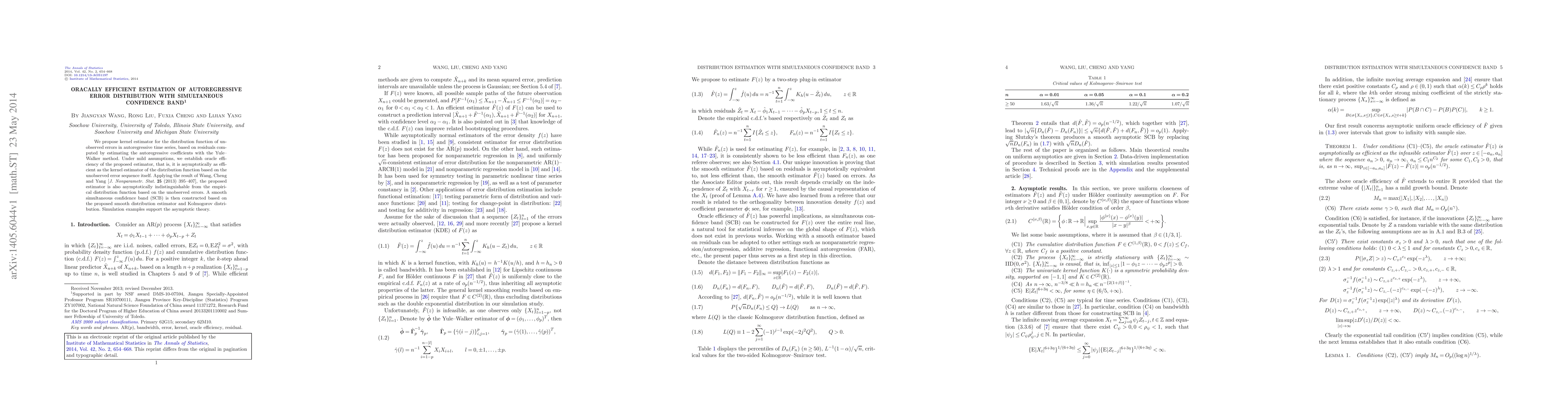 We propose kernel estimator for the distribution function of unobserved errors in autoregressive time series, based on residuals computed by estimating the autoregressive coefficients with the Yule-Walker method. Under mild assumptions, we establish oracle efficiency of the proposed estimator, that is, it is asymptotically as efficient as the kernel estimator of the distribution function based on the unobserved error sequence itself. Applying the result of Wang, Cheng and Yang [J. Nonparametr. Stat. 25 (2013) 395-407], the proposed estimator is also asymptotically indistinguishable from the empirical distribution function based on the unobserved errors. A smooth simultaneous confidence band (SCB) is then constructed based on the proposed smooth distribution estimator and Kolmogorov distribution. Simulation examples support the asymptotic theory.