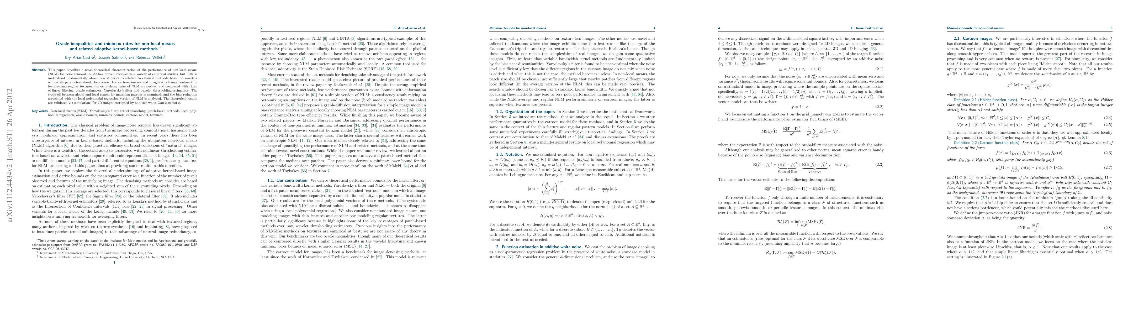 This paper provides a theoretical analysis of the performance of non-local means for noise removal, deriving error decay rates and comparing them to classical methods. The study examines the trade-offs in patch matching and bias reduction in local polynomial regression versions of the method, validated through simulations.