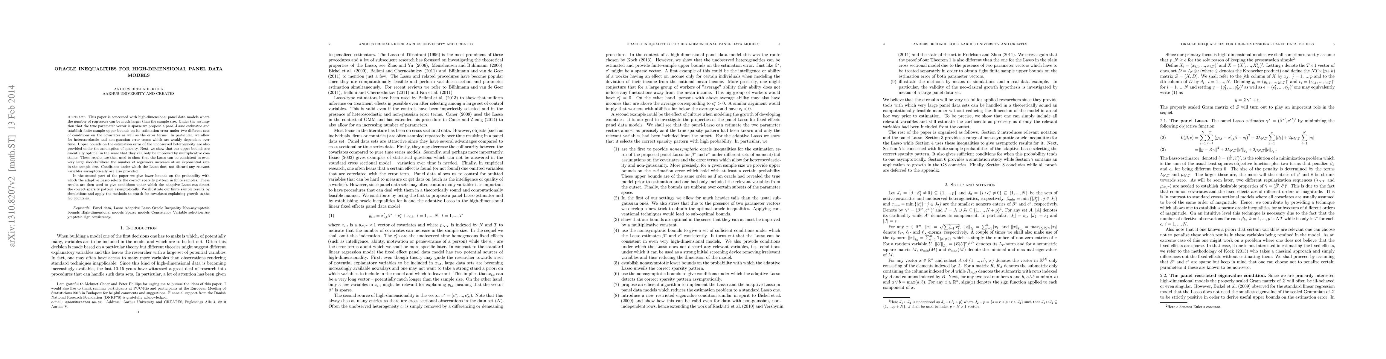 This paper proposes a panel-Lasso estimator for high-dimensional panel data models and establishes upper bounds on its estimation error under different conditions, showing that the Lasso can be consistent even in very large models with exponentially increasing regressors.