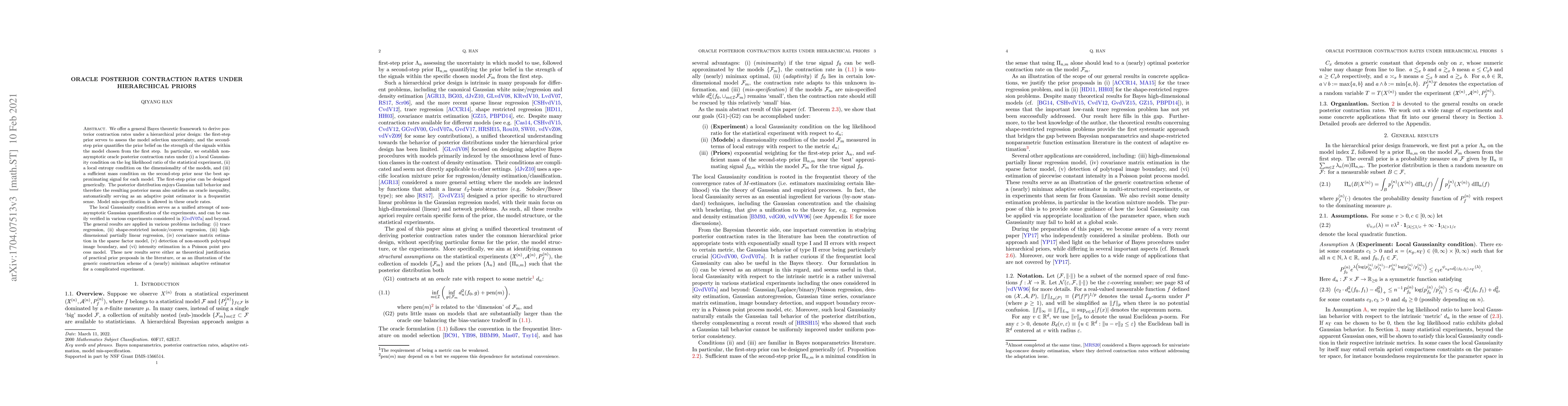 This paper develops a Bayes theoretic framework for deriving posterior contraction rates under hierarchical priors, establishing non-asymptotic oracle inequalities under specific conditions. The framework is applied to various statistical problems, providing theoretical justification for practical prior proposals and illustrating adaptive estimation techniques.