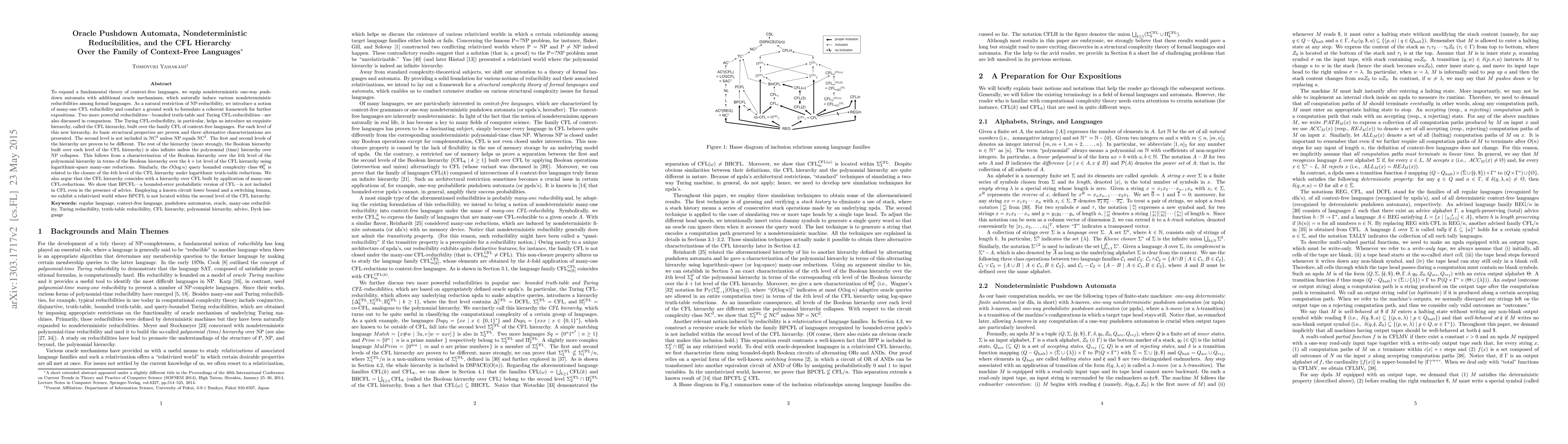 To expand a fundamental theory of context-free languages, we equip nondeterministic one-way pushdown automata with additional oracle mechanisms, which naturally induce various nondeterministic reducibilities among formal languages. As a natural restriction of NP-reducibility, we introduce a notion of many-one CFL reducibility and conduct a ground work to formulate a coherent framework for further expositions. Two more powerful reducibilities--bounded truth-table and Turing CFL-reducibilities--are also discussed in comparison. The Turing CFL-reducibility, in particular, helps us introduce an exquisite hierarchy, called the CFL hierarchy, built over the family CFL of context-free languages. For each level of this hierarchy, its basic structural properties are proven and three alternative characterizations are presented. The second level is not included in NC(2) unless NP= NC(2). The first and second levels of the hierarchy are different. The rest of the hierarchy (more strongly, the Boolean hierarchy built over each level of the hierarchy) is also infinite unless the polynomial hierarchy over NP collapses. This follows from a characterization of the Boolean hierarchy over the k-th level of the polynomial hierarchy in terms of the Boolean hierarchy over the k+1st level of the CFL hierarchy using log-space many-one reductions. Similarly, the complexity class Theta(k) is related to the closure of the k-th level of the CFL hierarchy under log-space truth-table reductions. We also argue that the CFL hierarchy coincides with a hierarchy over CFL built by application of many-one CFL-reductions. We show that BPCFL--a bounded-error probabilistic version of CFL--is not included in CFL even in the presence of advice. Employing a known circuit lower bound and a switching lemma, we exhibit a relativized world where BPCFL is not located within the second level of the CFL hierarchy.