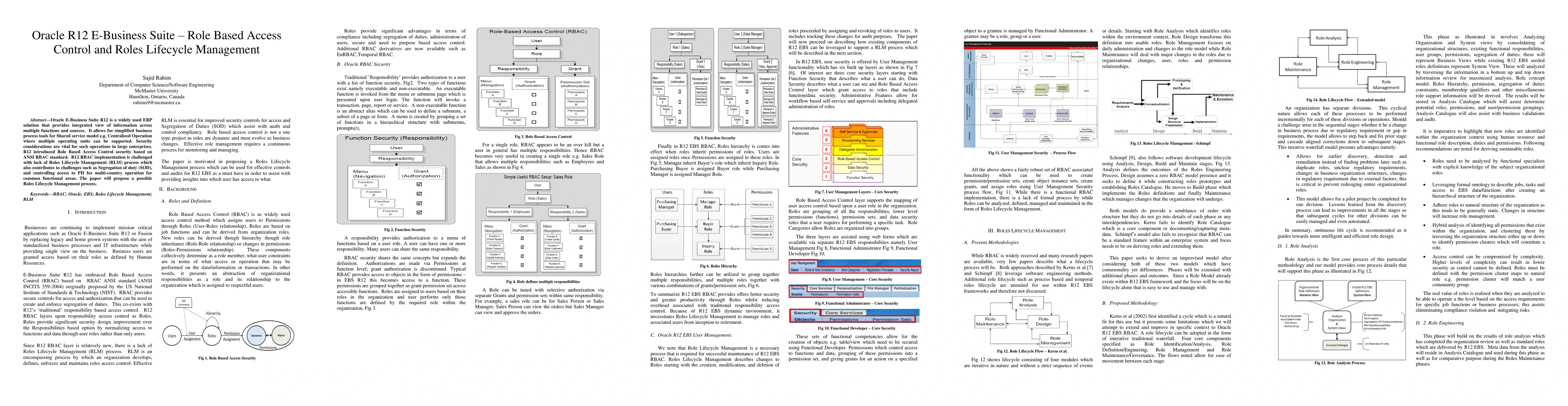 This paper discusses the security features of Oracle E-Business Suite R12, focusing on its Role Based Access Control and the absence of Roles Lifecycle Management. It proposes a solution to manage roles effectively to address challenges like Segregation of Duty and access control for sensitive information.