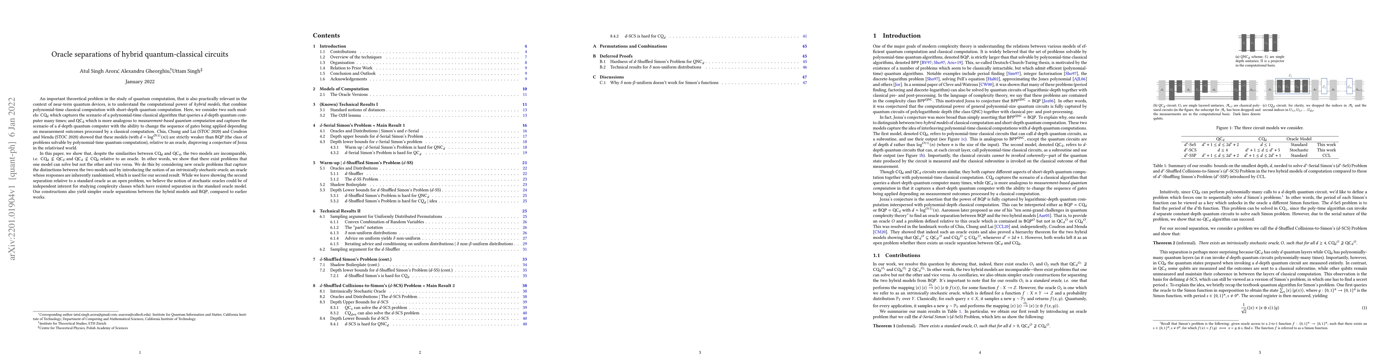 This paper explores the computational power of hybrid quantum-classical models, disproving a conjecture that these models could be as powerful as BQP. It demonstrates that the two models, CQ_d and QC_d, are incomparable relative to an oracle, showing distinct problem-solving capabilities. The study introduces intrinsically stochastic oracles, which may aid in future separations of complexity classes.