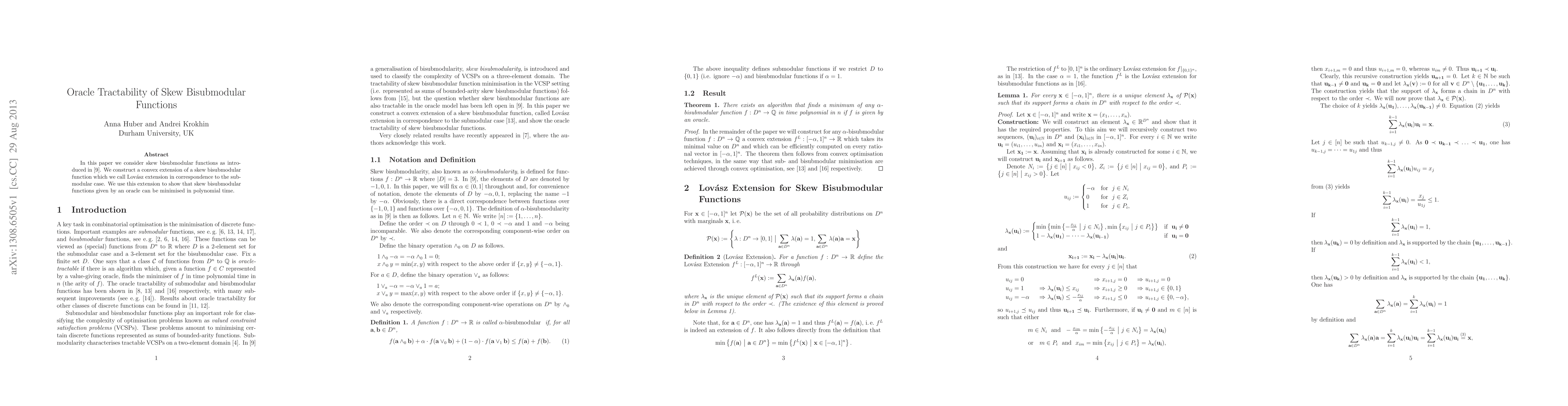 This paper introduces a convex extension, called the Lovasz extension, for skew bisubmodular functions and demonstrates that these functions can be minimized in polynomial time when provided with an oracle, establishing oracle tractability.