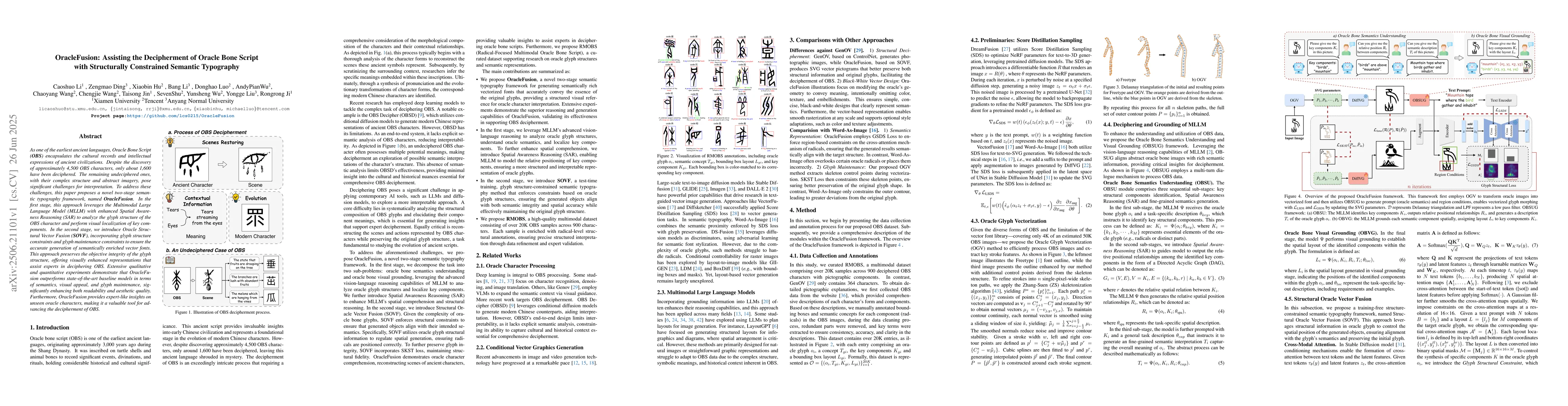 This work uniquely integrates spatially aware semantic typography with structural constraints, providing interpretable, visually enhanced representations of Oracle Bone Script characters, which is a significant advancement over existing generative models.