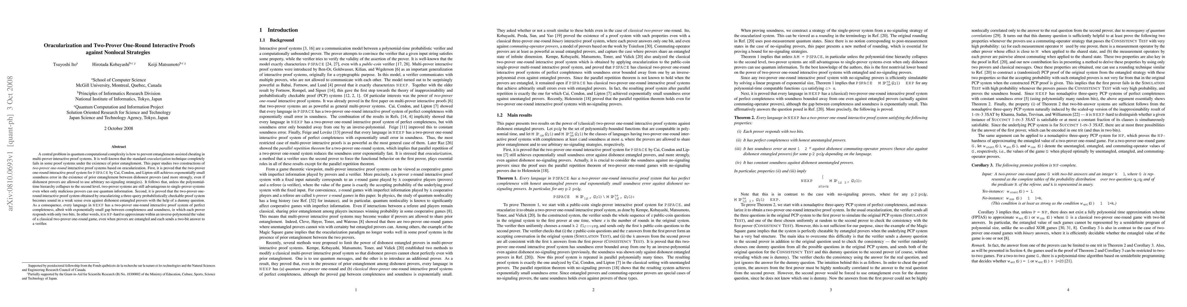 This paper investigates two-prover one-round interactive proof systems using oracularization to counter entanglement-assisted cheating. It demonstrates that the PSPACE proof system by Cai, Condon, and Lipton maintains soundness error despite prior entanglement, and shows that a modified three-query proof system achieves soundness against entangled provers, proving NP-hardness of approximating classical two-prover games under these conditions.