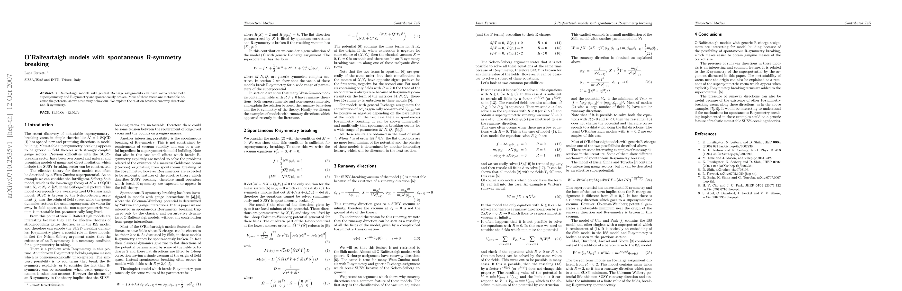 O'Raifeartaigh models with general R-charge assignments can have vacua where both supersymmetry and R-symmetry are spontaneously broken. Most of these vacua are metastable because the potential shows a runaway behaviour. We explain the relation between runaway directions and R-symmetry.