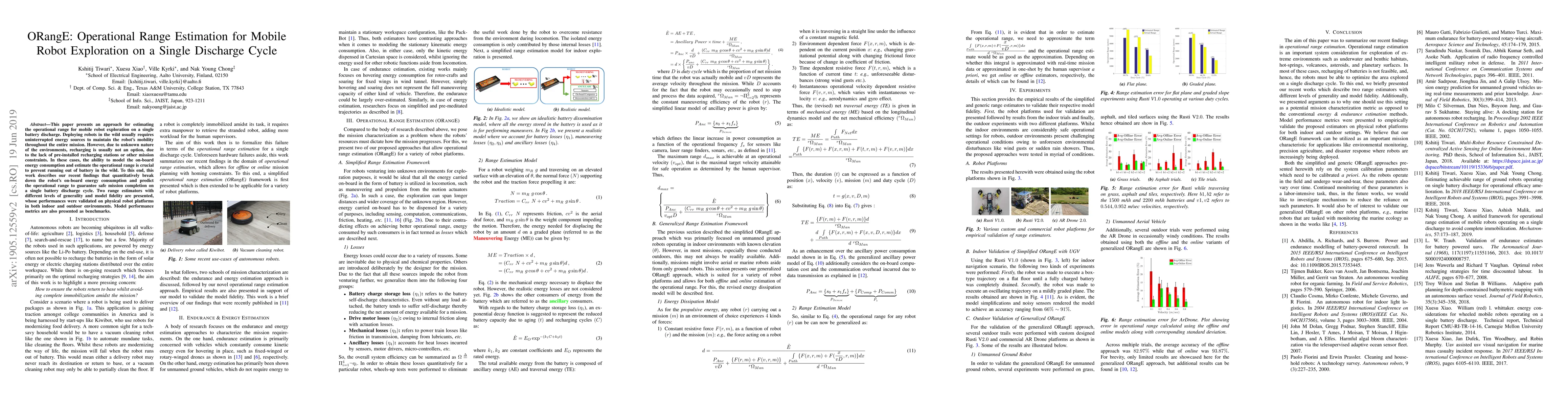This paper presents an approach for estimating the operational range for mobile robot exploration on a single battery discharge. Deploying robots in the wild usually requires uninterrupted energy sources to maintain the robot's mobility throughout the entire mission. However, for most endeavors into the unknown environments, recharging is usually not an option, due to the lack of pre-installed recharging stations or other mission constraints. In these cases, the ability to model the on-board energy consumption and estimate the operational range is crucial to prevent running out of battery in the wild. To this end, this work describes our recent findings that quantitatively break down the robot's on-board energy consumption and predict the operational range to guarantee safe mission completion on a single battery discharge cycle. Two range estimators with different levels of generality and model fidelity are presented, whose performances were validated on physical robot platforms in both indoor and outdoor environments. Model performance metrics are also presented as benchmarks.