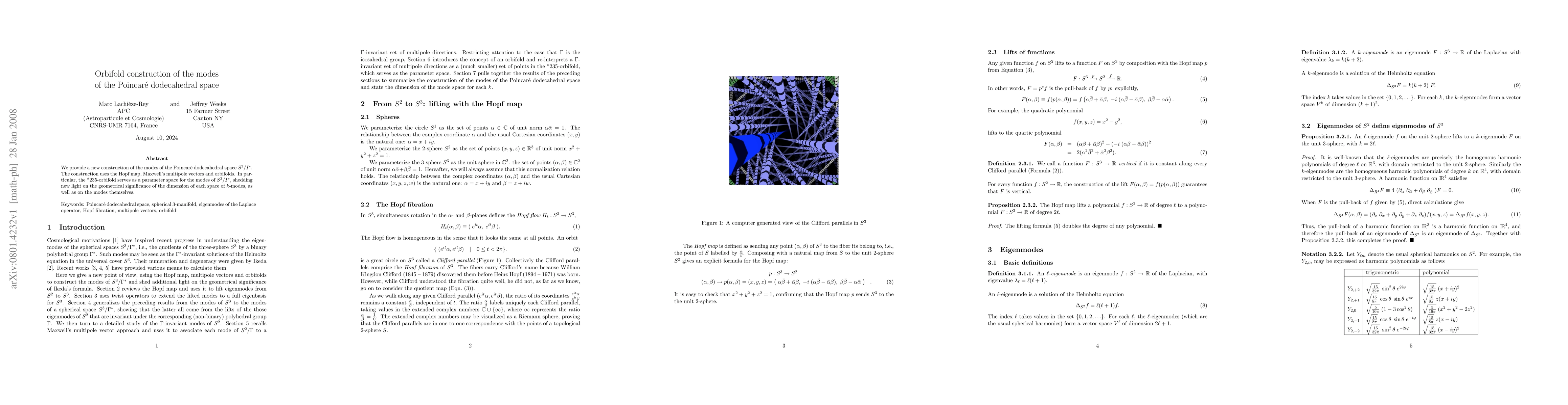 This paper constructs the modes of the Poincaré dodecahedral space using the Hopf map, Maxwell's multipole vectors, and orbifolds, specifically the *235-orbifold, which elucidates the geometric significance of the dimensions of $k$-modes and the modes themselves.