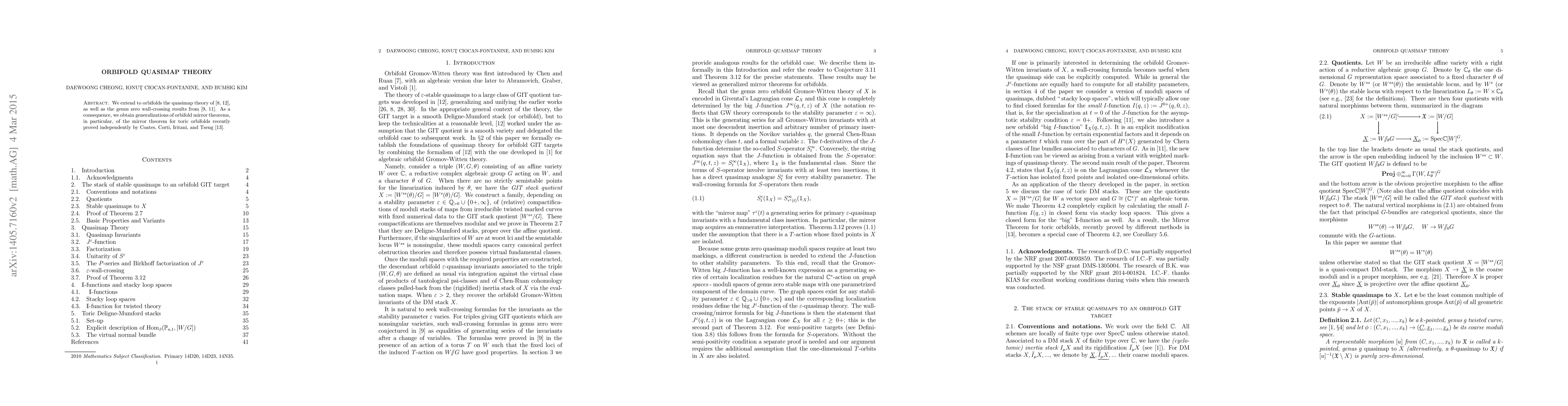 This paper extends quasimap theory to orbifolds, generalizing previous results from genus zero wall-crossing and establishing new orbifold mirror theorems, particularly for toric orbifolds, complementing independent work by Coates, Corti, Iritani, and Tseng.