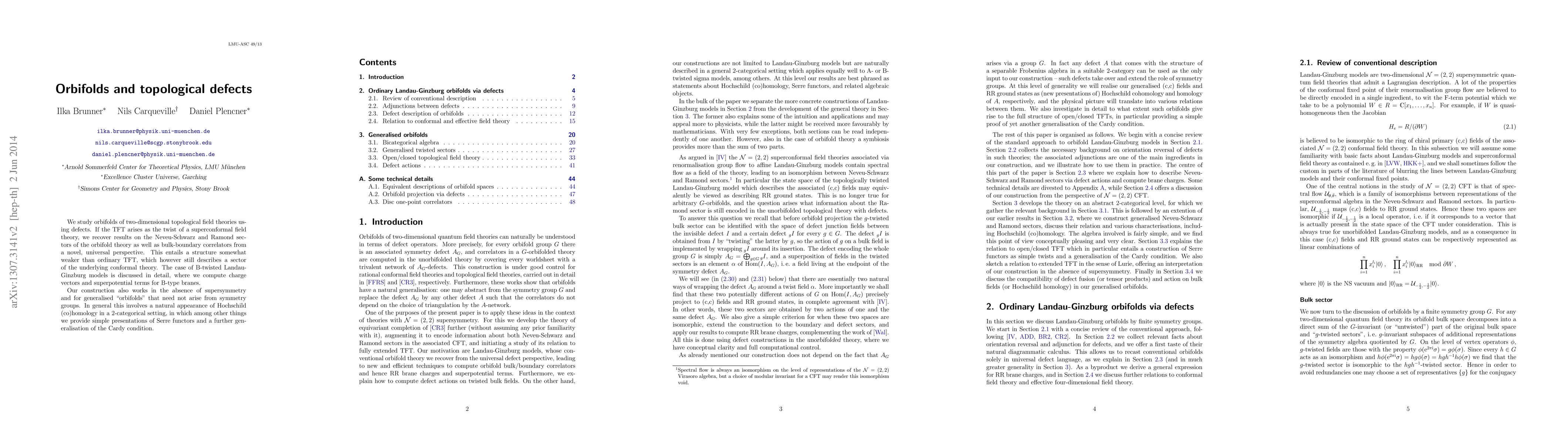 Researchers study orbifolds of two-dimensional topological field theories using defects, recovering results on Neveu-Schwarz and Ramond sectors and bulk-boundary correlators from a novel perspective.