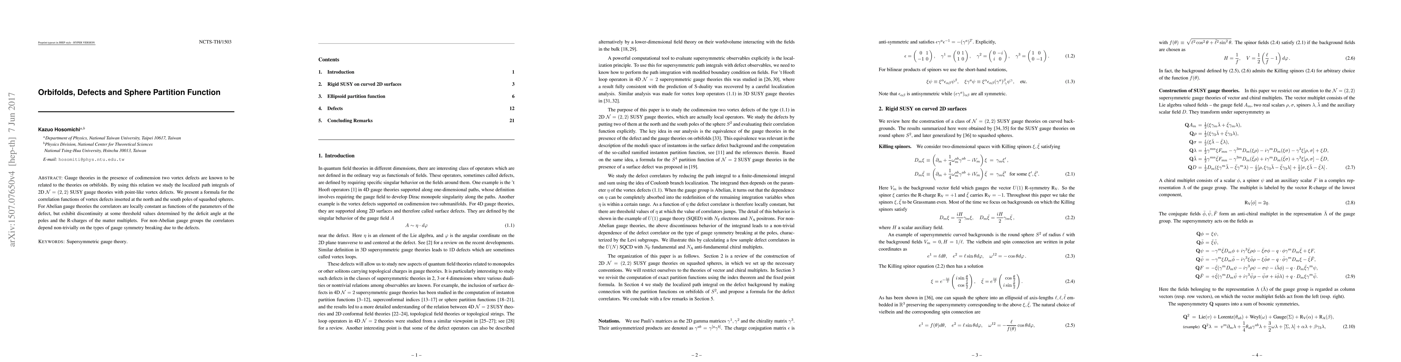 This paper explores the relationship between gauge theories with vortex defects and orbifold theories, presenting a formula for correlation functions of vortex defects on squashed spheres. It finds that for Abelian gauge theories, correlators are constant except at specific threshold values, while for non-Abelian gauge groups, correlators depend on the type of gauge symmetry breaking caused by the defects.