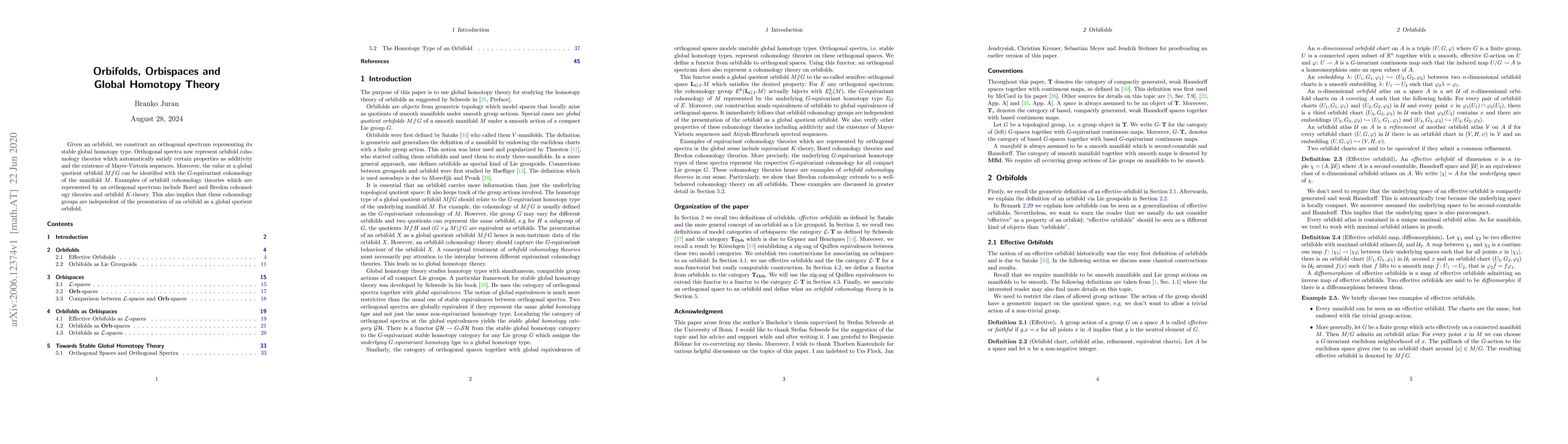 This research paper shows how an orthogonal spectrum can represent the stable global homotopy type of an orbifold, leading to a new understanding of orbifold cohomology theories that are independent of the presentation of an orbifold.