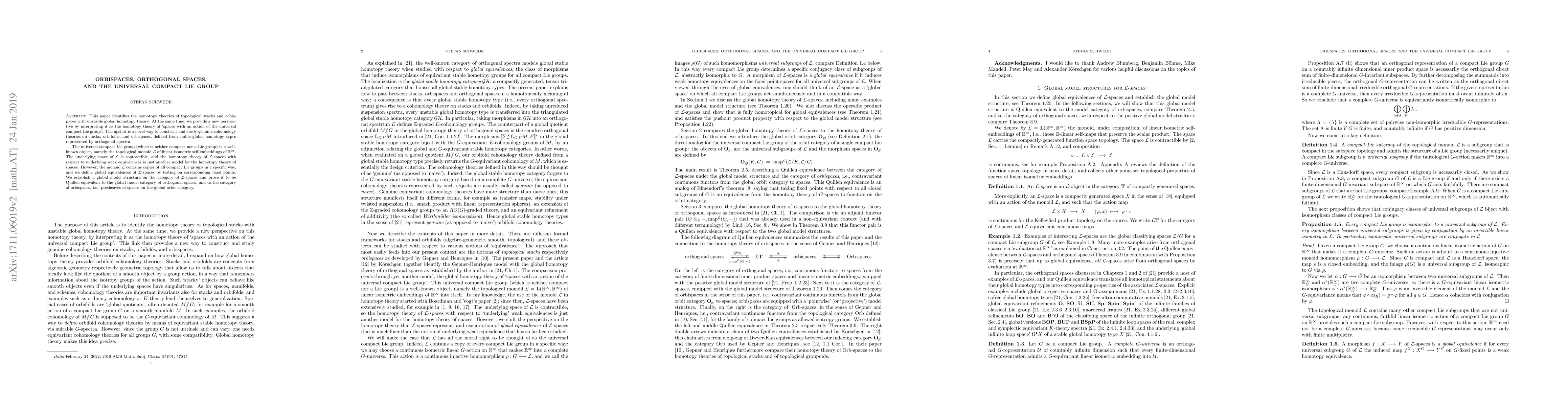 This paper equates the homotopy theories of topological stacks and orbispaces with unstable global homotopy theory, presenting them as the homotopy theory of spaces with an action of the universal compact Lie group, $\mathcal L$. It establishes a Quillen equivalence between $\mathcal L$-spaces and both orthogonal spaces and orbispaces, facilitating the construction of genuine cohomology theories on these structures.