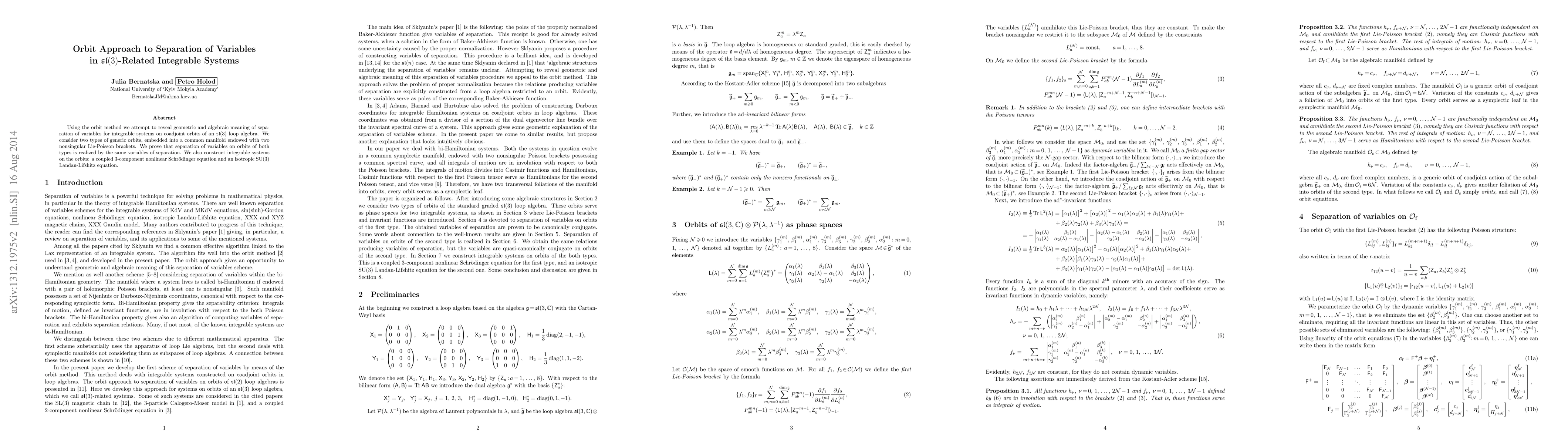 This paper applies the orbit method to demonstrate the geometric and algebraic significance of separation of variables in integrable systems on $\mathfrak{sl}(3)$ coadjoint orbits. It constructs integrable systems, including a coupled 3-component nonlinear Schrödinger equation and an isotropic SU(3) Landau-Lifshitz equation, showing that the same variables realize separation of variables for both orbit types.