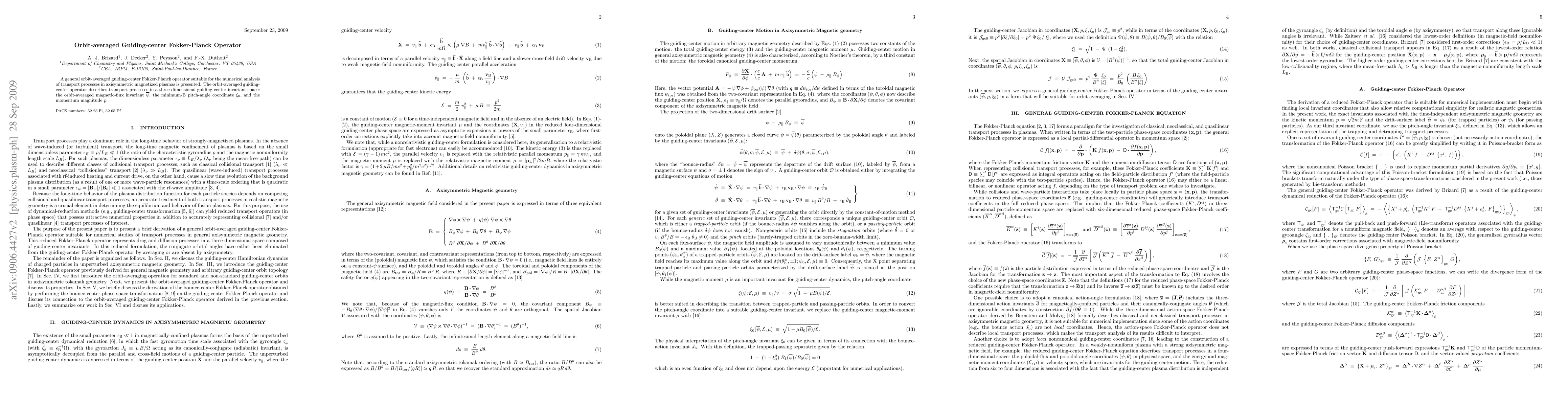 A general orbit-averaged guiding-center Fokker-Planck operator suitable for the numerical analysis of transport processes in axisymmetric magnetized plasmas is presented. The orbit-averaged guiding-center operator describes transport processes in a three-dimensional guiding-center invariant space: the orbit-averaged magnetic-flux invariant $\ov{\psi}$, the minimum-B pitch-angle coordinate $\xi_{0}$, and the momentum magnitude $p$.