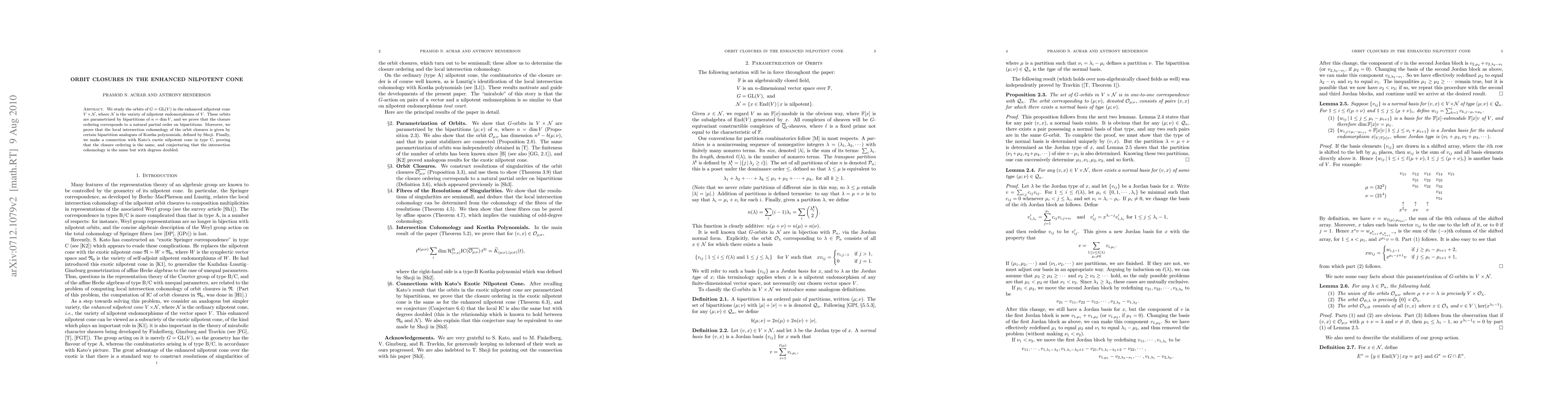 This paper investigates the orbits of $\mathrm{GL}(V)$ in the enhanced nilpotent cone $V\times\mathcal{N}$, demonstrating that orbit closures are ordered by a natural partial order on bipartitions. It also links this ordering to Kato's exotic nilpotent cone, conjecturing a doubling of degrees in intersection cohomology.