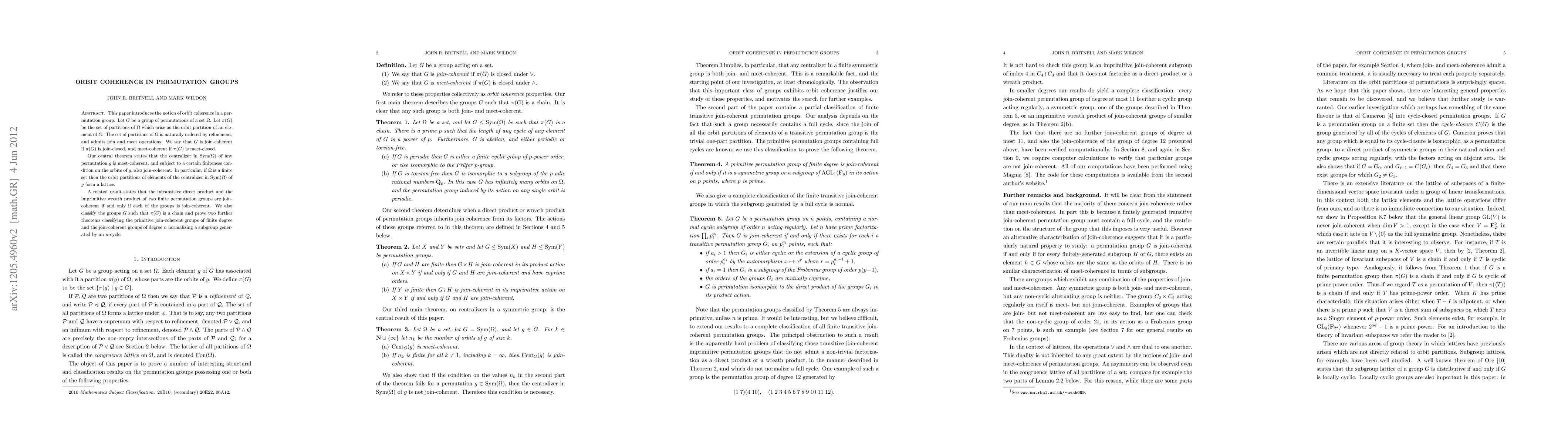 This paper explores orbit coherence in permutation groups, defining join-coherence and meet-coherence based on the closure properties of orbit partitions. It proves that the centralizer in the symmetric group is meet-coherent and, under certain conditions, join-coherent, and establishes lattice structure for finite sets.