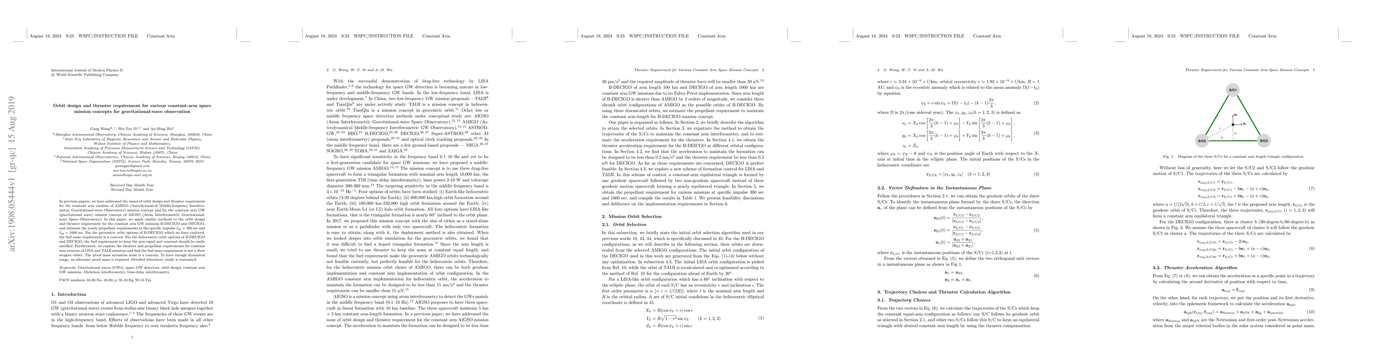 In previous papers, we have addressed the issues of orbit design and thruster requirement for the constant arm versions of AMIGO (Astrodynamical Middle-frequency Interferometric Gravitational-wave Observatory) mission concept and for the constant arm GW (gravitational wave) mission concept of AIGSO (Atom Interferometric Gravitational-wave Space Observatory). In this paper, we apply similar methods to the orbit design and thruster requirement for the constant arm GW missions B-DECIGO and DECIGO, and estimate the yearly propellant requirements at the specific impulse Isp = 300 sec and Isp = 1000 sec. For the geocentric orbit options of B-DECIGO which we have explored, the fuel mass requirement is a concern. For the heliocentric orbit options of B-DECIGO and DECIGO, the fuel requirement to keep the arm equal and constant should be easily satisfied. Furthermore, we explore the thruster and propellant requirements for constant arm versions of LISA and TAIJI missions and find the fuel mass requirement is not a show stopper either. The proof mass actuation noise is a concern. To have enough dynamical range, an alternate proof mass is required. Detailed laboratory study is warranted