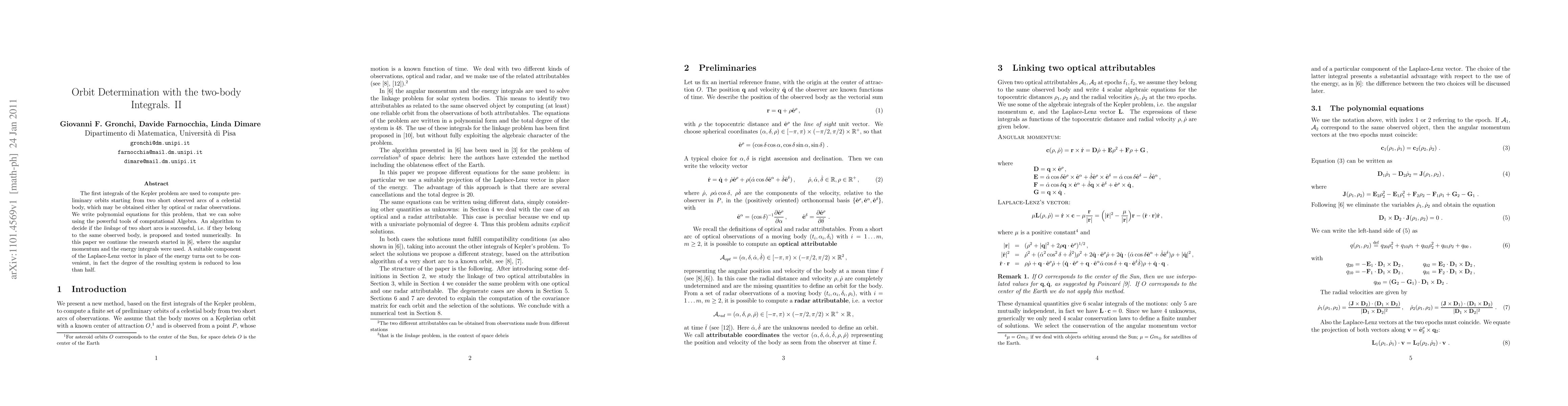 Researchers develop an algorithm to determine celestial orbits from short observed arcs using polynomial equations and computational algebra, reducing the system's degree by half with a new component of the Laplace-Lenz vector.