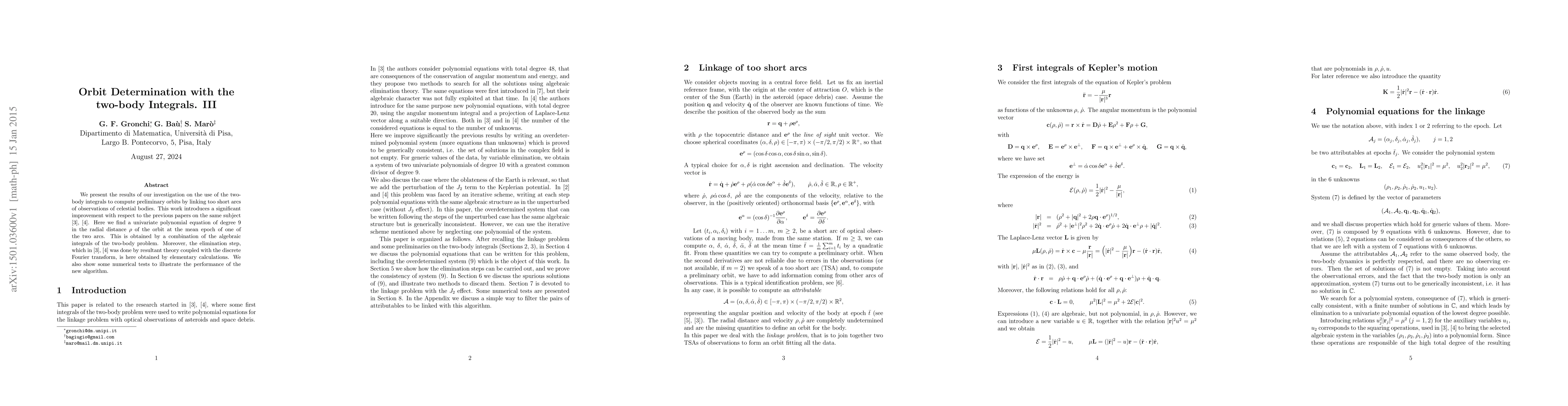 Researchers develop a new method for determining orbits using two-body integrals, improving upon previous work by simplifying calculations and achieving higher degree polynomials.