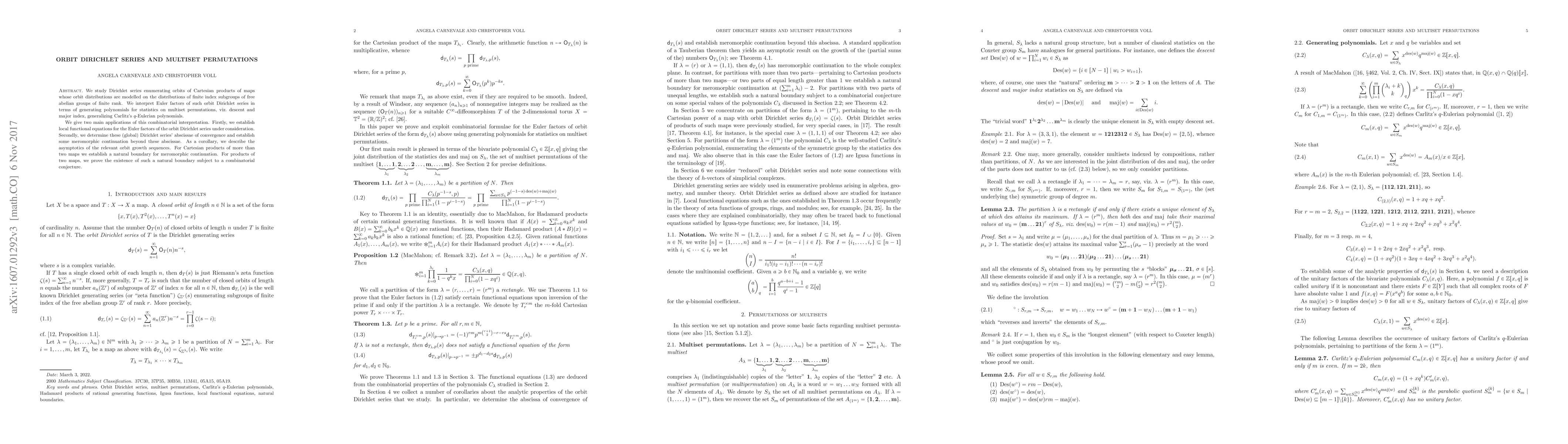 This paper studies Dirichlet series enumerating orbits of Cartesian products of maps, interpreting their Euler factors in terms of generating polynomials for multiset permutation statistics. It establishes local functional equations and determines the abscissae of convergence, proving the existence of a natural boundary for meromorphic continuation under certain conditions.