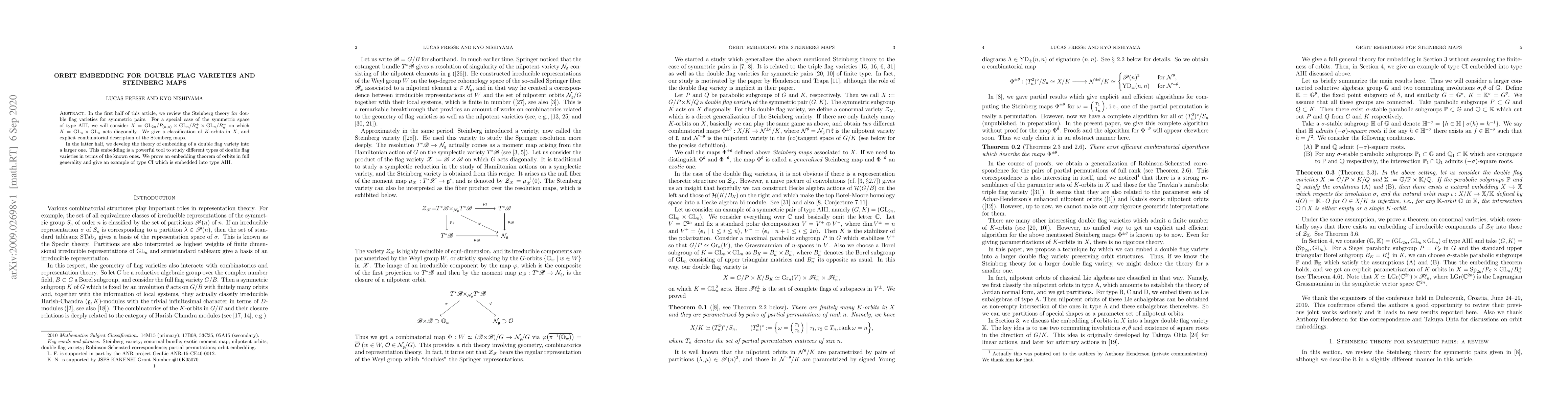 This paper reviews the Steinberg theory for double flag varieties and provides a classification of K-orbits in a specific symmetric space of type AIII. It also develops an embedding theory for double flag varieties, proving a general embedding theorem and illustrating it with an example embedding type CI into type AIII.