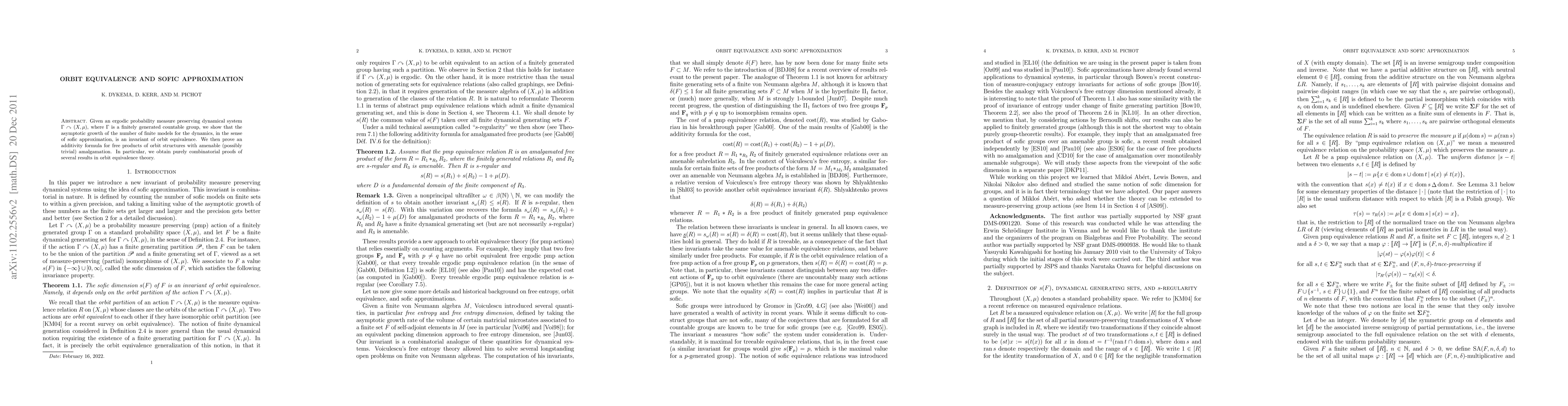 This paper demonstrates that the asymptotic growth of finite models for the dynamics of an ergodic system under sofic approximations is invariant under orbit equivalence. It also proves an additivity formula for free products with amenable amalgamation, providing combinatorial proofs for several results in orbit equivalence theory.
