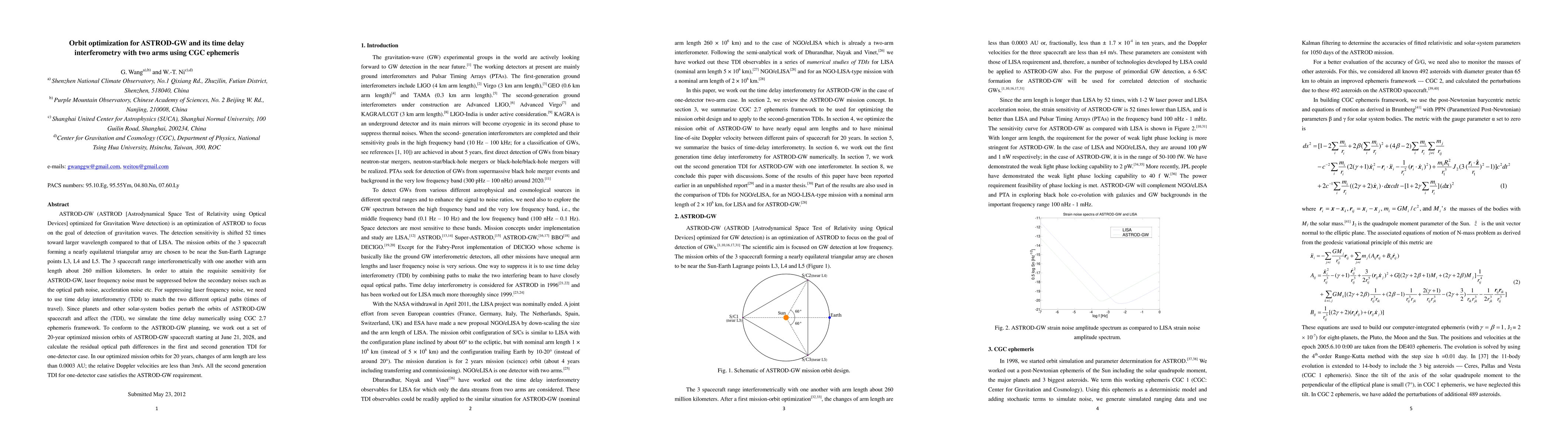The research utilizes orbit optimization for ASTROD-GW, focusing on time delay interferometry with two arms using the CGC ephemeris. The study simulates time delay numerically to perturb the orbits of ASTROD-GW spacecraft caused by planets and solar-system bodies, ensuring the requisite sensitivity for gravitational wave detection.