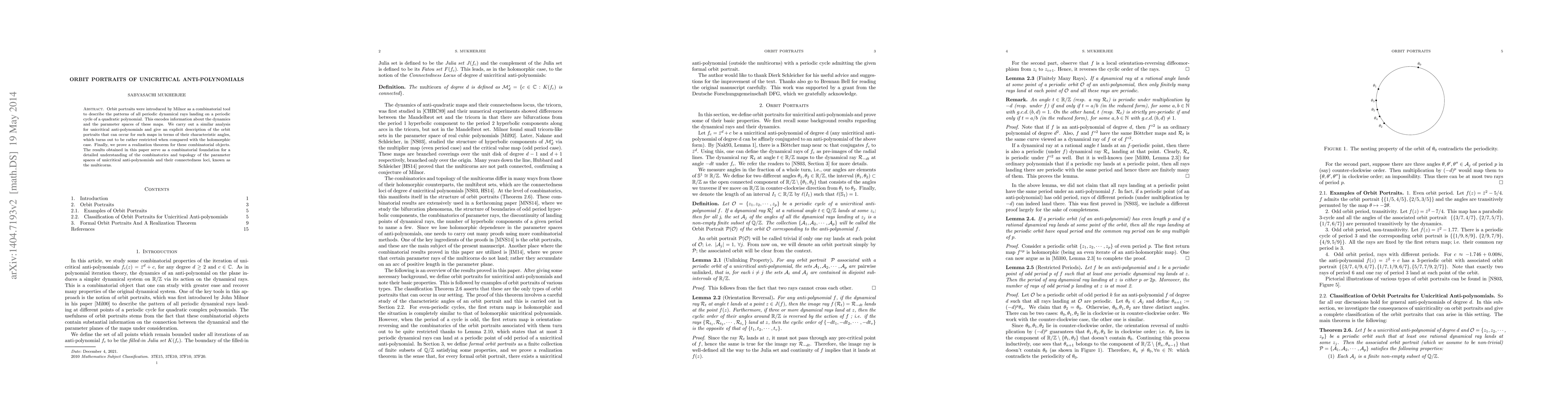 This paper analyzes orbit portraits for unicritical anti-polynomials, providing a combinatorial description of their possible patterns in terms of characteristic angles and proving a realization theorem. The findings lay a foundation for understanding the topology and connectivity of parameter spaces for these anti-polynomials.