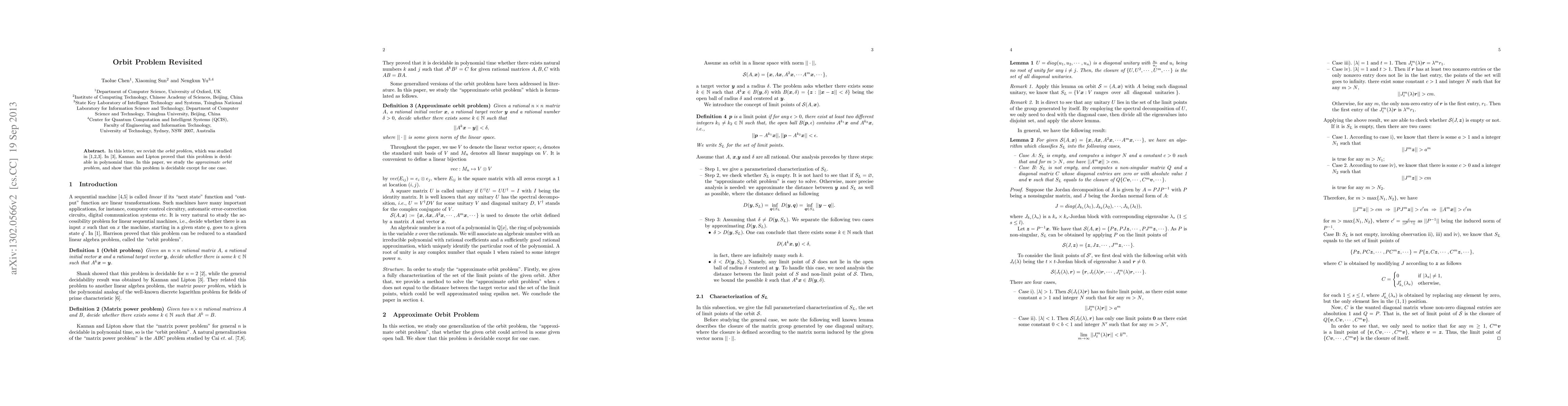 In this letter, we revisit the {\em orbit problem}, which was studied in \cite{HAR69,SHA79,KL86}. In \cite{KL86}, Kannan and Lipton proved that this problem is decidable in polynomial time. In this paper, we study the {\em approximate orbit problem}, and show that this problem is decidable except for one case.