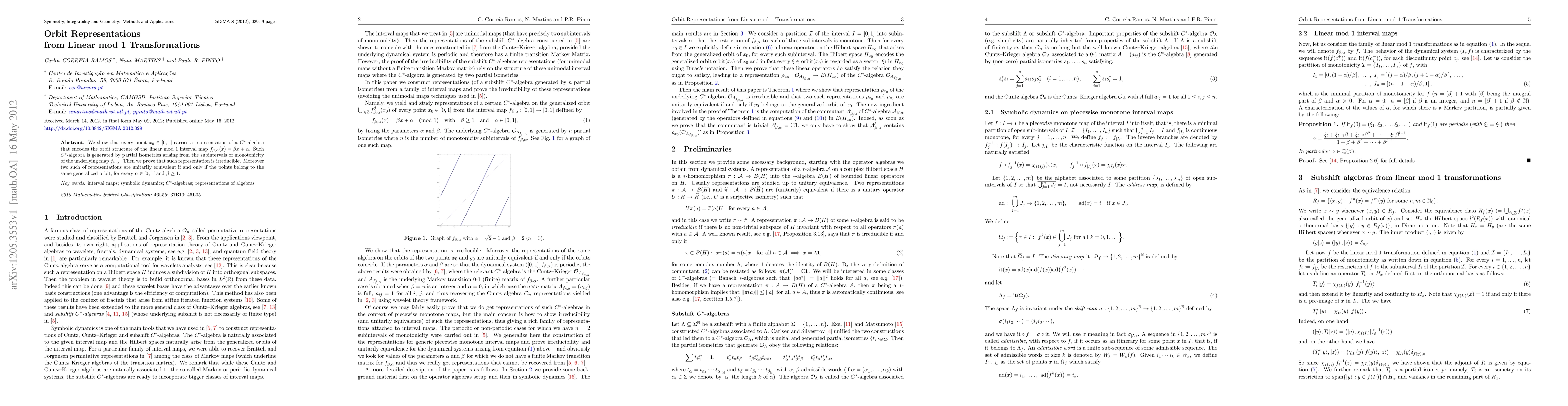 We show that every point $x_0\in [0,1]$ carries a representation of a $C^*$-algebra that encodes the orbit structure of the linear mod 1 interval map $f_{\beta,\alpha}(x)=\beta x +\alpha$. Such $C^*$-algebra is generated by partial isometries arising from the subintervals of monotonicity of the underlying map $f_{\beta,\alpha}$. Then we prove that such representation is irreducible. Moreover two such of representations are unitarily equivalent if and only if the points belong to the same generalized orbit, for every $\alpha\in [0,1[$ and $\beta\geq 1$.