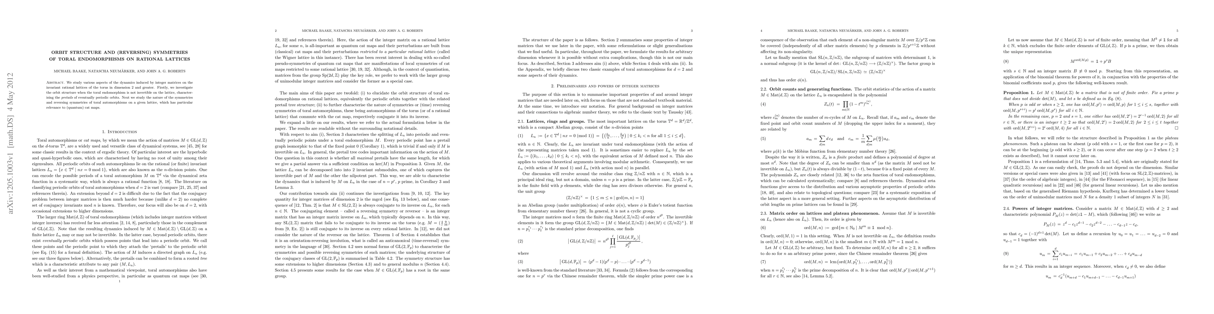 We study various aspects of the dynamics induced by integer matrices on the invariant rational lattices of the torus in dimension 2 and greater. Firstly, we investigate the orbit structure when the toral endomorphism is not invertible on the lattice, characterising the pretails of eventually periodic orbits. Next we study the nature of the symmetries and reversing symmetries of toral automorphisms on a given lattice, which has particular relevance to (quantum) cat maps.
