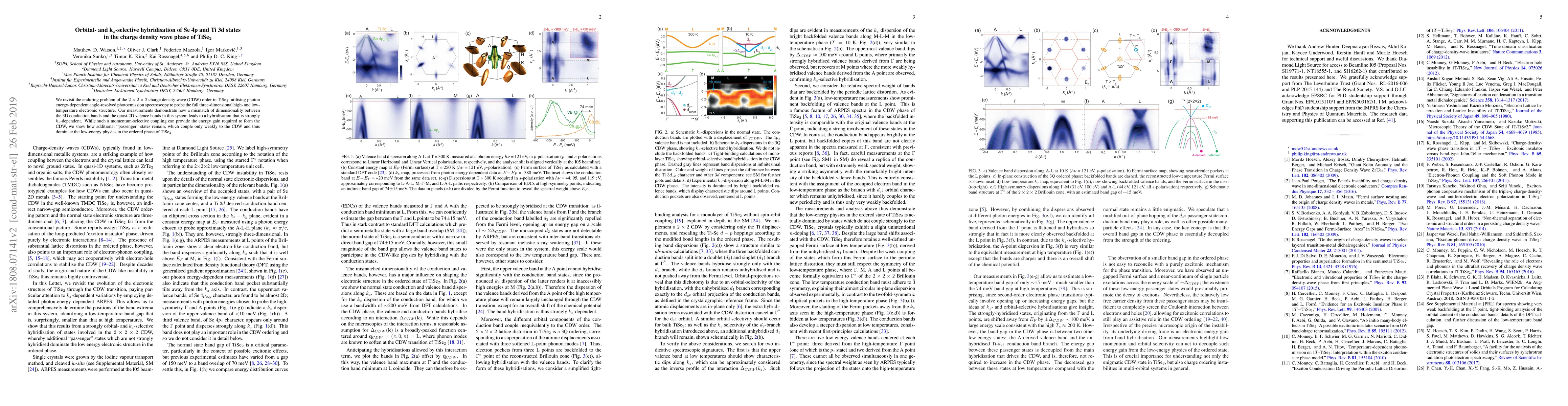 This paper investigates the $2\times{}2\times{}2$ charge density wave (CDW) in TiSe$_2$ using angle-resolved photoemission spectroscopy, revealing $k_z$-selective hybridisation between Se 4p and Ti 3d states. It finds that while this hybridisation aids in forming the CDW, "passenger" states weakly coupled to the CDW dominate the low-energy physics.