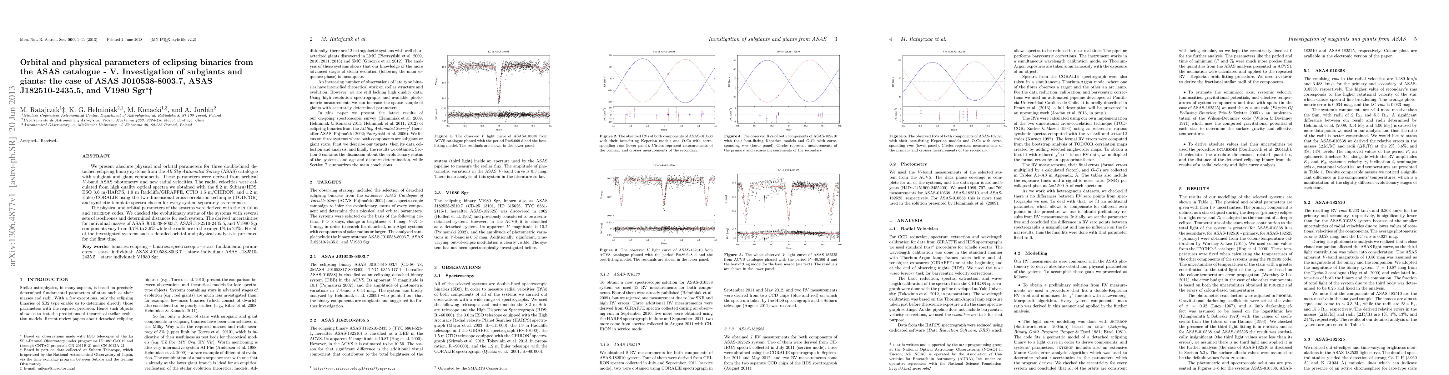 This paper presents detailed physical and orbital parameters for three eclipsing binary systems from the ASAS catalogue, using archival V-band photometry and new radial velocities obtained from high-quality optical spectra. The parameters were derived using the PHOEBE and JKTEBOP codes, marking the first comprehensive analysis of these systems.
