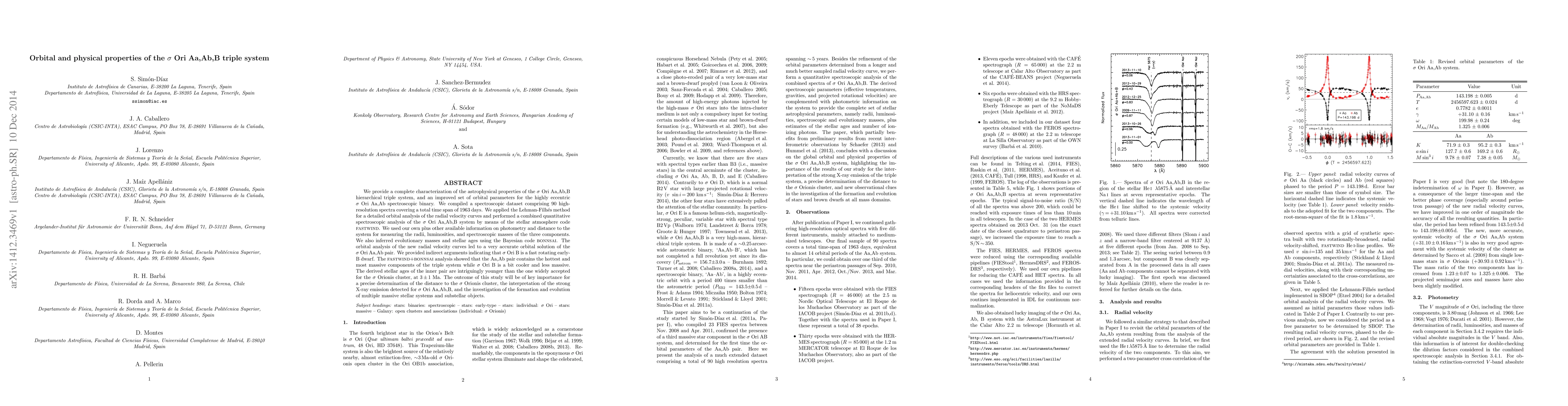 We provide a complete characterization of the astrophysical properties of the $\sigma$ Ori Aa,Ab,B hierarchical triple system, and an improved set of orbital parameters for the highly eccentric $\sigma$ Ori Aa,Ab spectroscopic binary. We compiled a spectroscopic dataset comprising 90 high-resolution spectra covering a total time span of 1963 days. We applied the Lehman-Filh\'es method for a detailed orbital analysis of the radial velocity curves and performed a combined quantitative spectroscopic analysis of the {$\sigma$ Ori Aa,Ab,B} system by means of the stellar atmosphere code FASTWIND. We used our own plus other available information on photometry and distance to the system for measuring the radii, luminosities, and spectroscopic masses of the three components. We also inferred evolutionary masses and stellar ages using the Bayesian code BONNSAI. The orbital analysis of the new radial velocity curves led to a very accurate orbital solution of the $\sigma$ Ori Aa,Ab pair. We provided indirect arguments indicating that $\sigma$ Ori B is a fast rotating early-B dwarf. The FASTWIND+BONNSAI analysis showed that the Aa,Ab pair contains the hottest and most massive components of the triple system while $\sigma$ Ori B is a bit cooler and less massive. The derived stellar ages of the inner pair are intriguingly younger than the one widely accepted for the $\sigma$ Orionis cluster, at 3$\pm$1 Ma. The outcome of this study will be of key importance for a precise determination of the distance to the $\sigma$ Orionis cluster, the interpretation of the strong X-ray emission detected for $\sigma$ Ori Aa,Ab,B, and the investigation of the formation and evolution of multiple massive stellar systems and substellar objects.