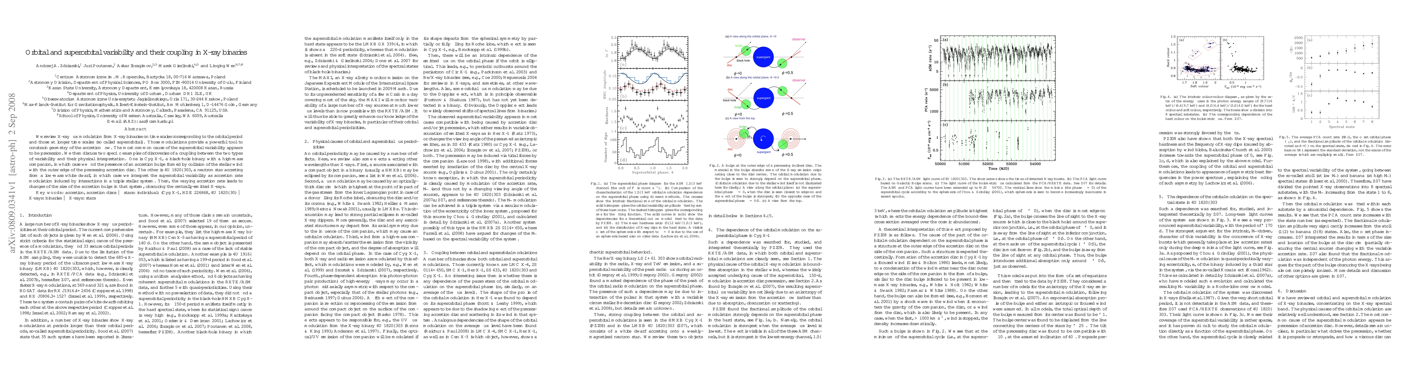 This paper reviews X-ray flux modulation in X-ray binaries due to orbital and superorbital variability, attributing superorbital changes primarily to precession. It highlights coupling between these variabilities in Cyg X-1 and 4U 1820-303, explaining the accretion dynamics and geometry in each case.