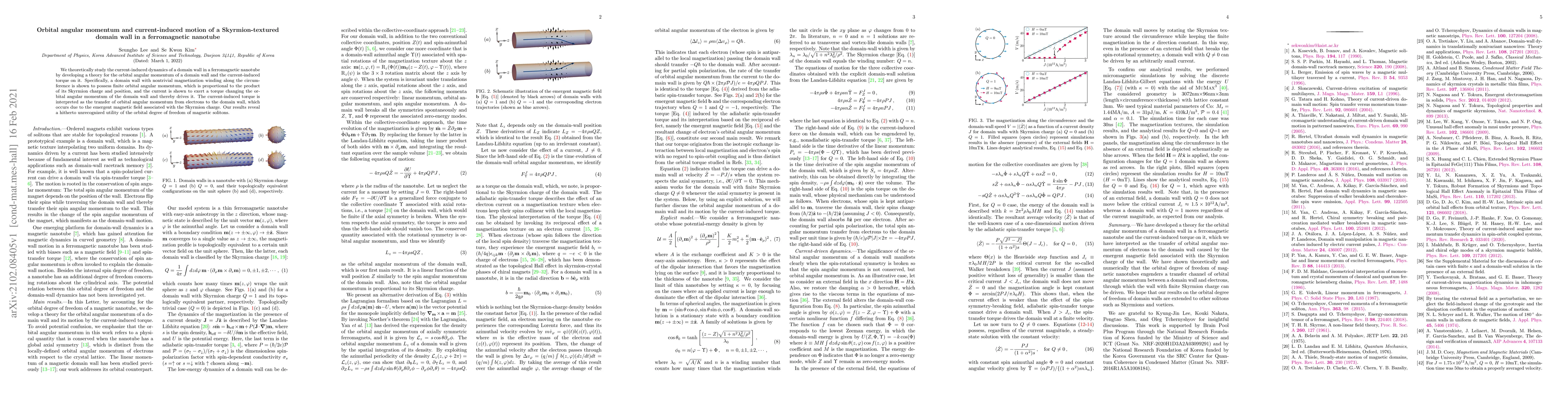 This paper explores the current-induced motion of a Skyrmion-textured domain wall in a ferromagnetic nanotube, revealing that such walls possess orbital angular momentum. The study shows that an electric current exerts a torque on the domain wall, transferring orbital angular momentum from electrons to the wall and driving its motion.