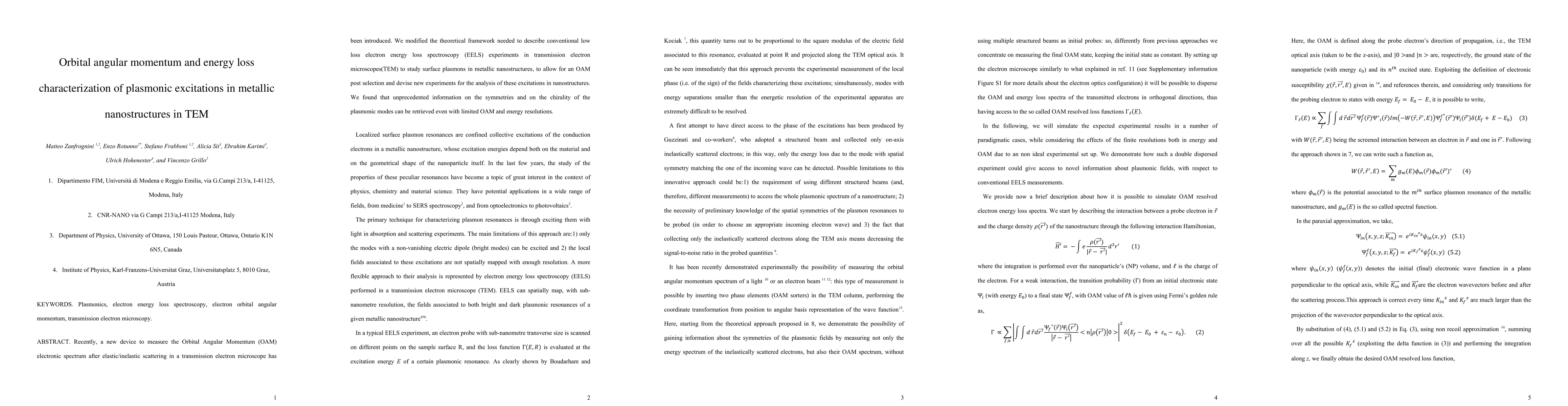 This paper introduces a new device for measuring Orbital Angular Momentum in plasmonic excitations via TEM, modifying the theoretical framework for EELS to analyze surface plasmons in metallic nanostructures. It reveals that detailed information on plasmonic mode symmetries and chirality can be obtained despite limited OAM and energy resolution.
