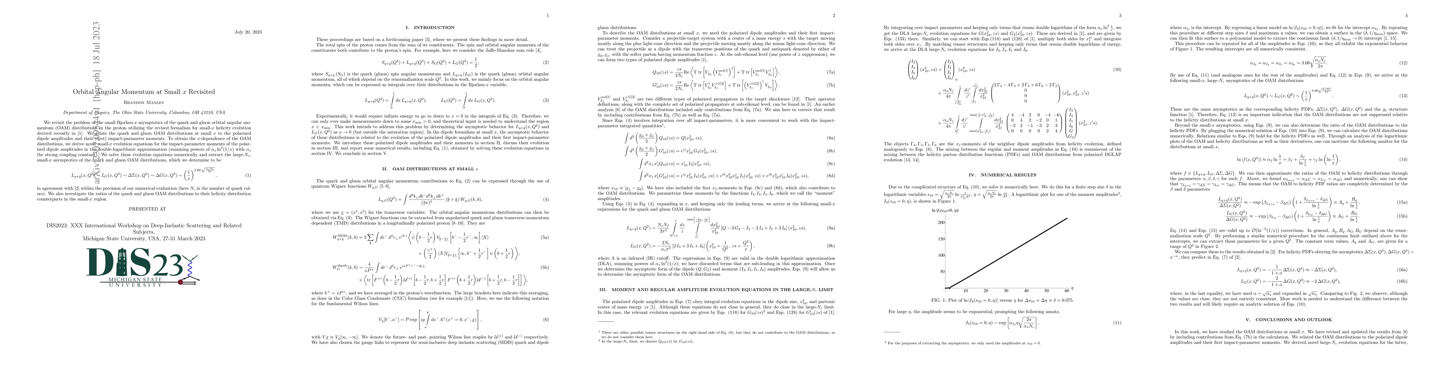 This paper revisits the small Bjorken-$x$ asymptotics of quark and gluon orbital angular momentum distributions in protons, using a new small-$x$ helicity evolution formalism. It derives novel evolution equations for the impact-parameter moments and finds that the quark and gluon OAM distributions scale as $(\frac{1}{x})^{3.66 \sqrt{\frac{\alpha_s N_c}{2\pi}}}$ at small $x$.