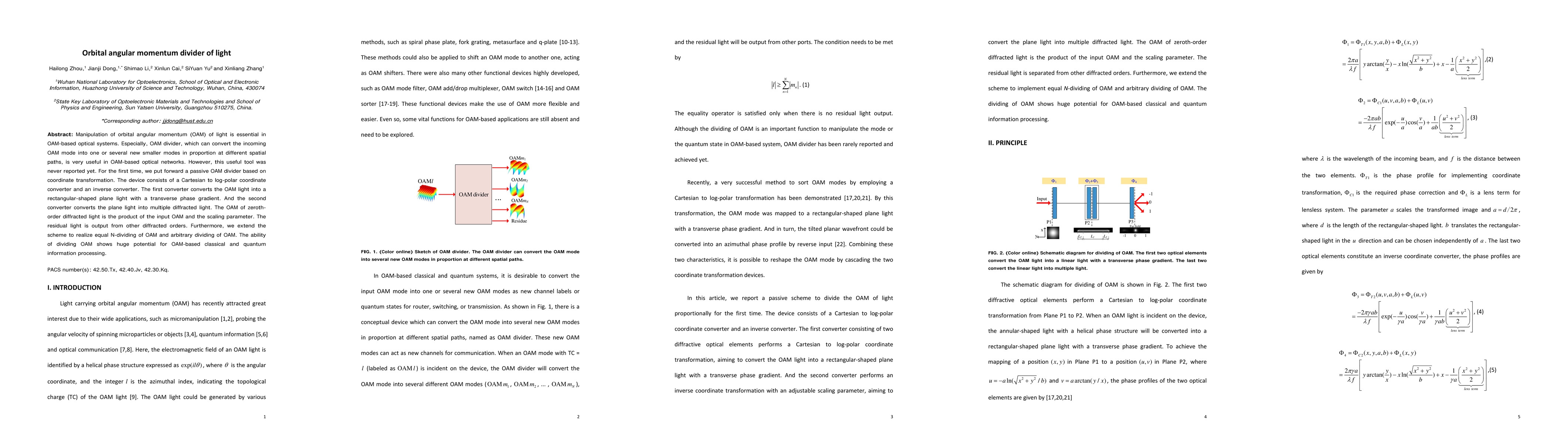 This paper introduces the first passive orbital angular momentum (OAM) divider, which converts incoming OAM modes into smaller proportional modes via coordinate transformation. The device employs a Cartesian to log-polar converter and an inverse converter to achieve OAM division, demonstrating potential for OAM-based optical networks and information processing.