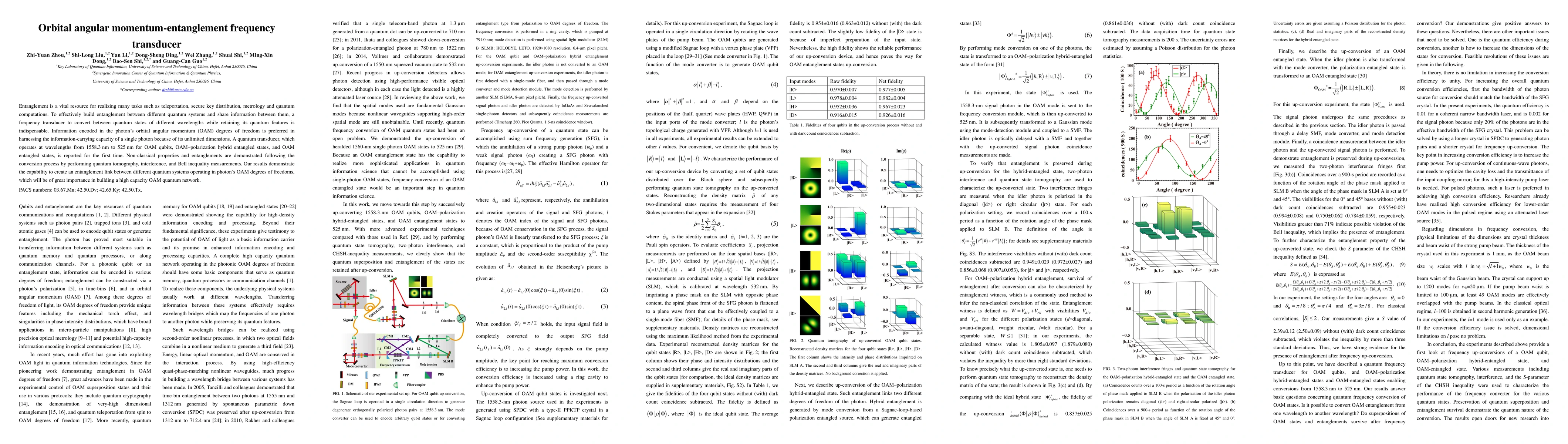 This paper reports the first quantum transducer that converts between quantum states of different wavelengths while preserving entanglement, specifically for orbital angular momentum (OAM) qubits. The demonstrated device operates across a wide range of wavelengths and maintains nonclassical properties, paving the way for high-capacity OAM quantum networks.