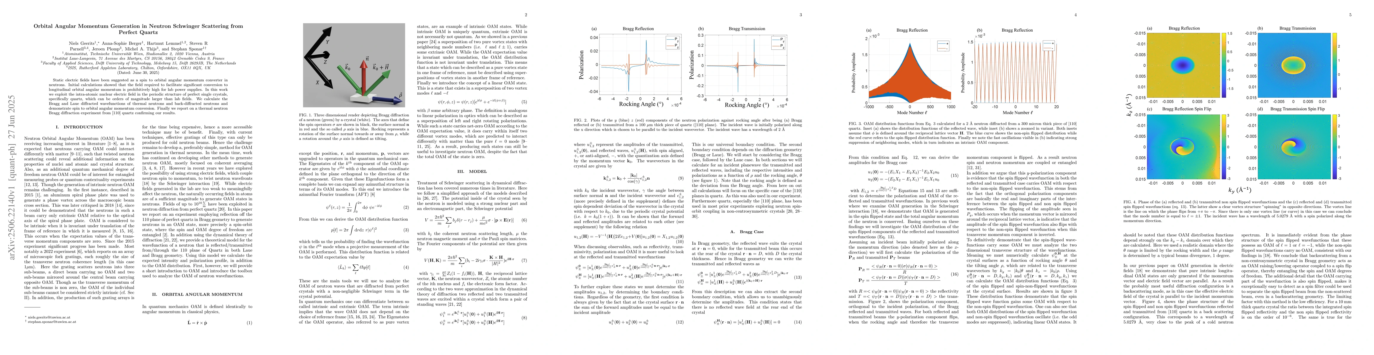 This research demonstrates that perfect quartz crystals can convert neutron spin to orbital angular momentum via their stronger intra-atomic nuclear electric fields. The study confirms this through calculations of diffracted wavefunctions and a thermal neutron Bragg diffraction experiment from [110] quartz.