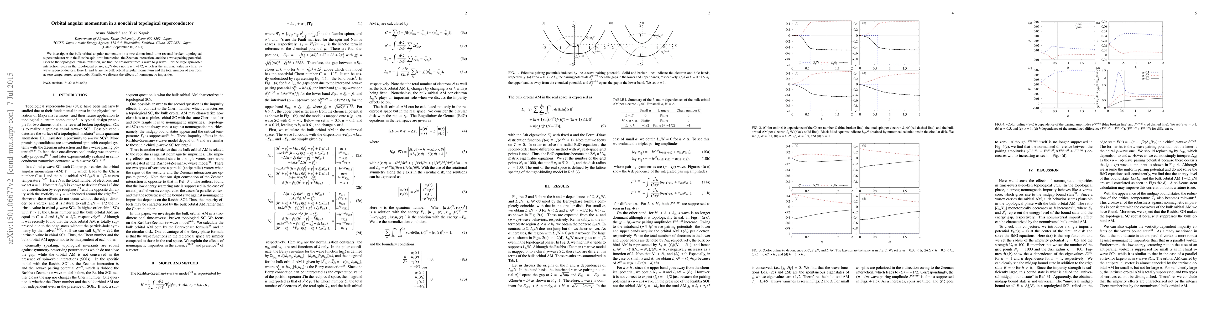 We investigate the bulk orbital angular momentum in a two-dimensional time-reversal broken topological superconductor with the Rashba spin-orbit interaction, the Zeeman interaction, and the $s$-wave pairing potential. Prior to the topological phase transition, we find the crossover from $s$ wave to $p$ wave. For the large spin-orbit interaction, even in the topological phase, $L_z/N$ does not reach $-1/2$, which is the intrinsic value in chiral $p$-wave superconductors. Here $L_z$ and $N$ are the bulk orbital angular momentum and the total number of electrons at zero temperature, respectively. Finally, we discuss the effects of nonmagnetic impurities.