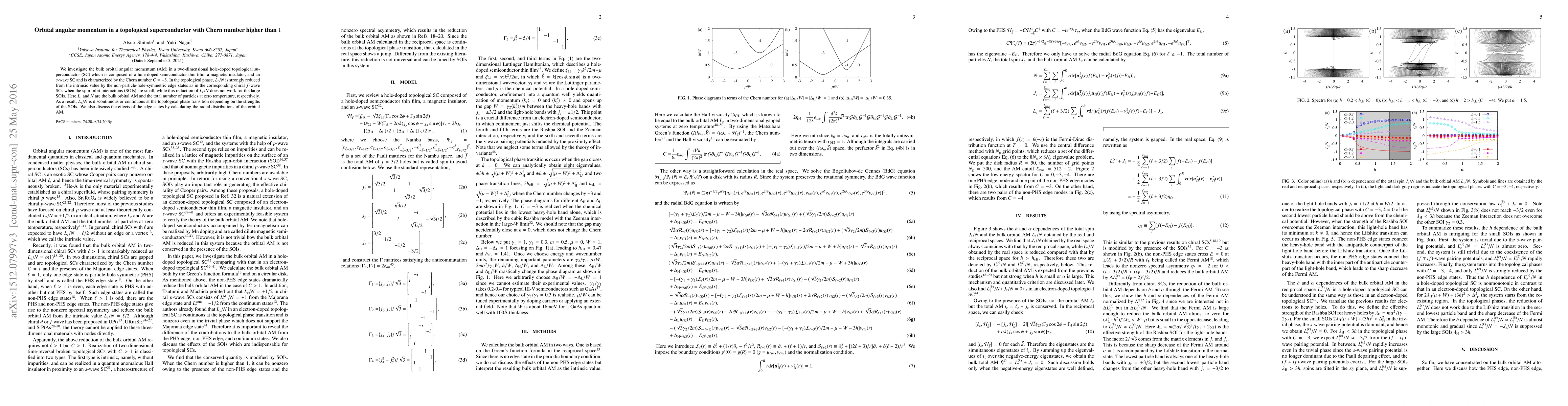 This paper examines the bulk orbital angular momentum in a topological superconductor with a Chern number of -3, finding that its reduction depends on the strength of spin-orbit interactions, leading to either a discontinuous or continuous transition in the topological phase. The study also analyzes the effects of edge states on the orbital angular momentum distribution.
