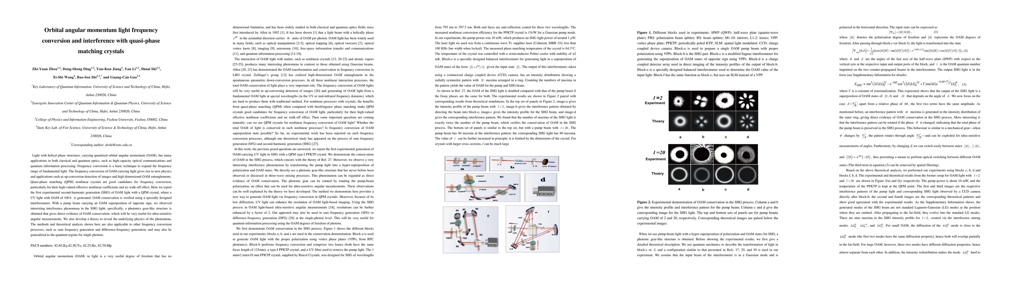 This paper reports the first experimental second-harmonic generation (SHG) of light carrying orbital angular momentum (OAM) using quasi-phase matching crystals, demonstrating OAM conservation and revealing interference phenomena. The findings have potential applications in high-capacity optical communications and quantum information processing.