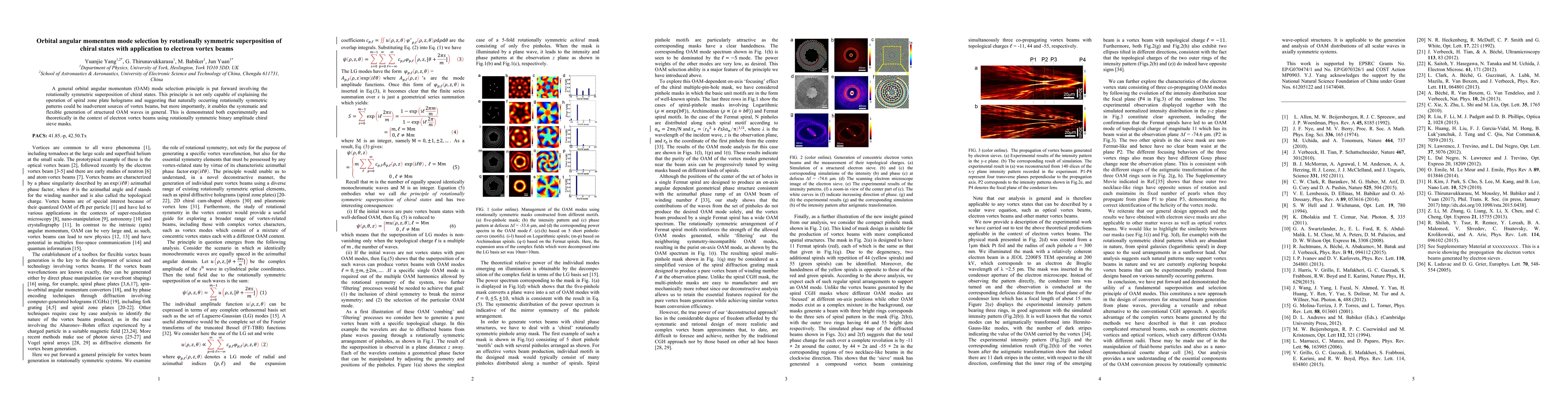 This paper proposes a novel OAM mode selection method through rotationally symmetric superposition of chiral states, enabling flexible generation of structured OAM waves. Demonstrated experimentally and theoretically with electron vortex beams, it suggests spiral zone plate holograms and naturally occurring patterns may inadvertently produce vortex beams.