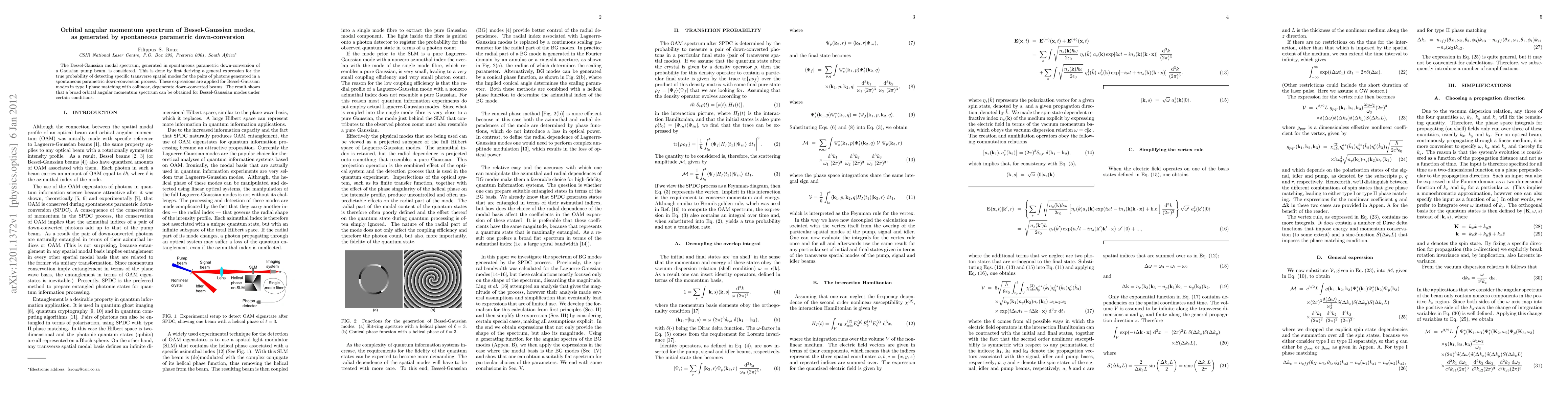 This paper investigates the orbital angular momentum spectrum of Bessel-Gaussian modes produced via spontaneous parametric down-conversion, deriving expressions for detecting specific spatial modes. It reveals that under certain conditions, a wide range of orbital angular momentum can be generated for these modes.
