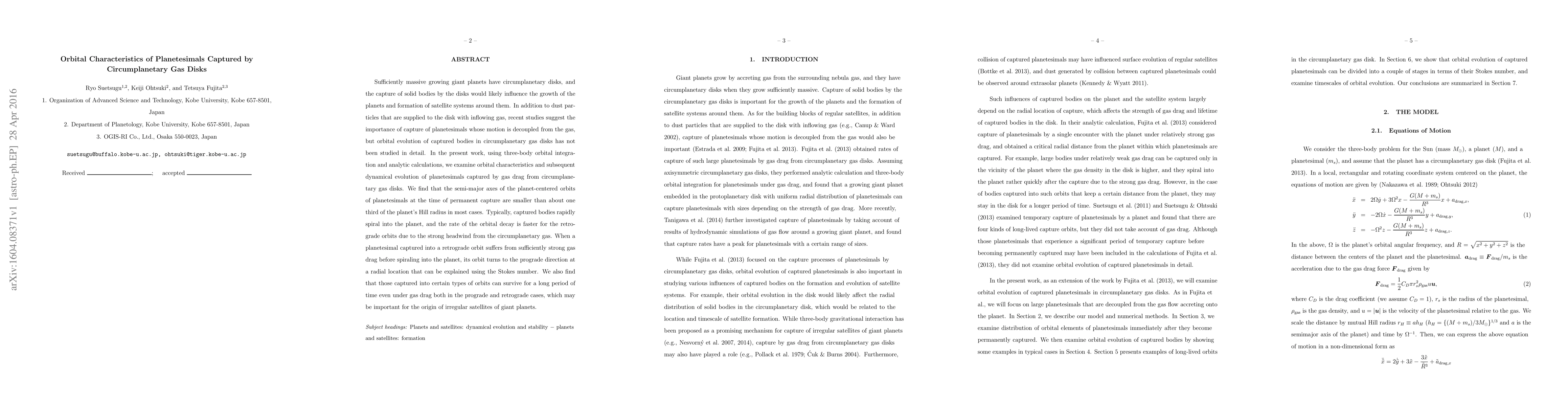 This paper investigates the orbital dynamics of planetesimals captured by circumplanetary gas disks, finding that most are permanently captured within one third of the planet's Hill radius and rapidly spiral into the planet, with retrograde orbits experiencing faster decay due to gas drag. Some captured bodies can survive long periods, suggesting a potential mechanism for the formation of irregular satellites.