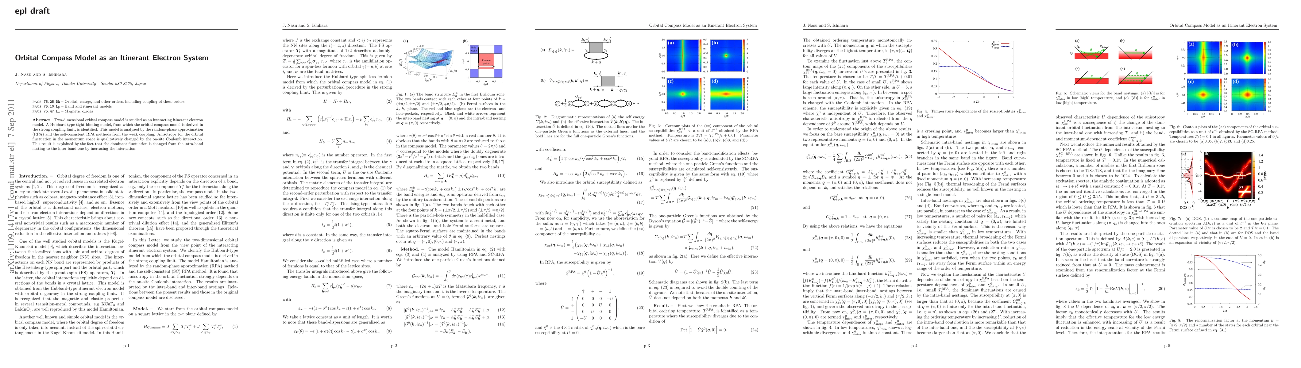 This paper investigates the orbital compass model as an itinerant electron system using a Hubbard-type tight-binding model. The study reveals that the on-site Coulomb interaction alters the anisotropy of orbital fluctuations, shifting the dominant fluctuation from intra-band to inter-band nesting.